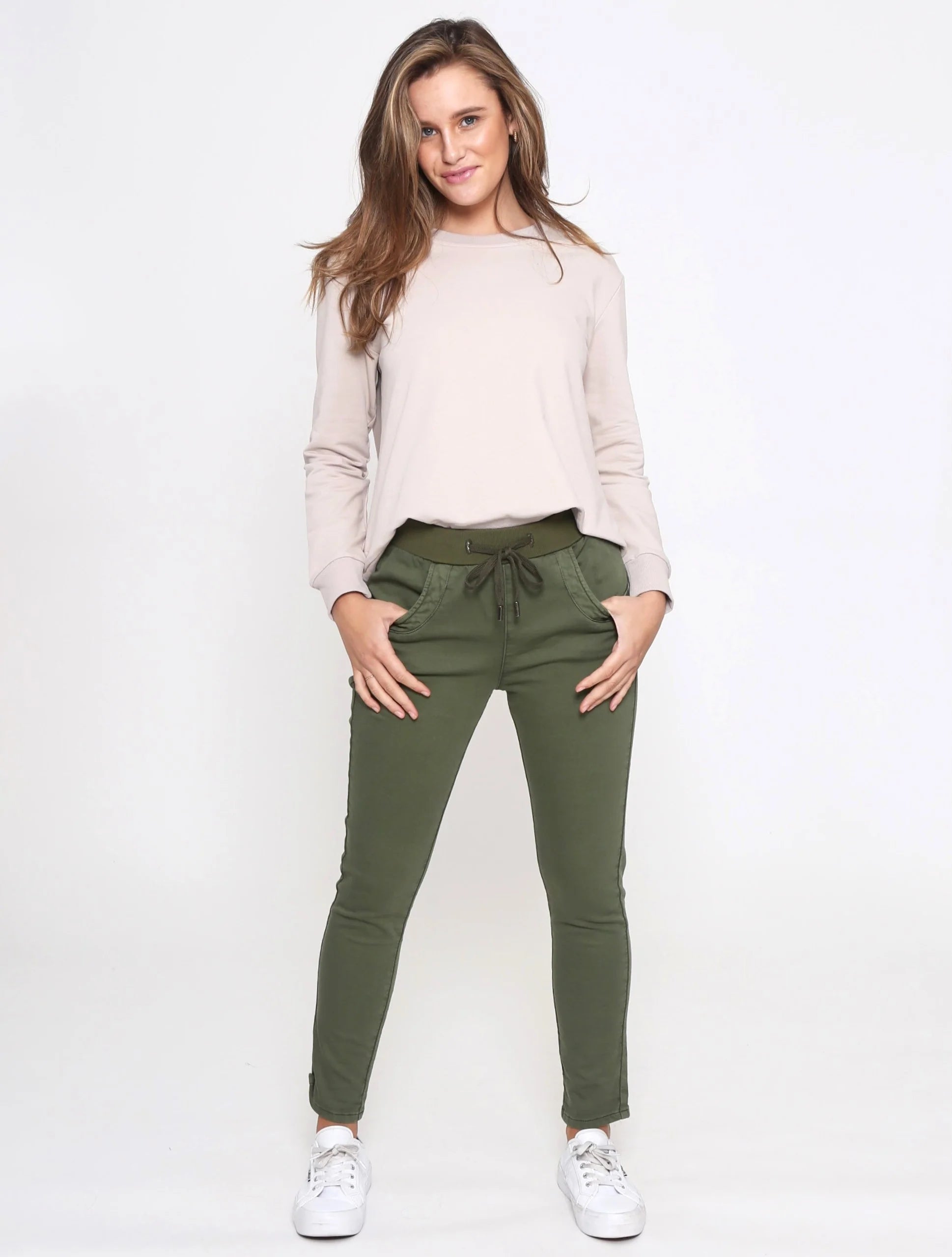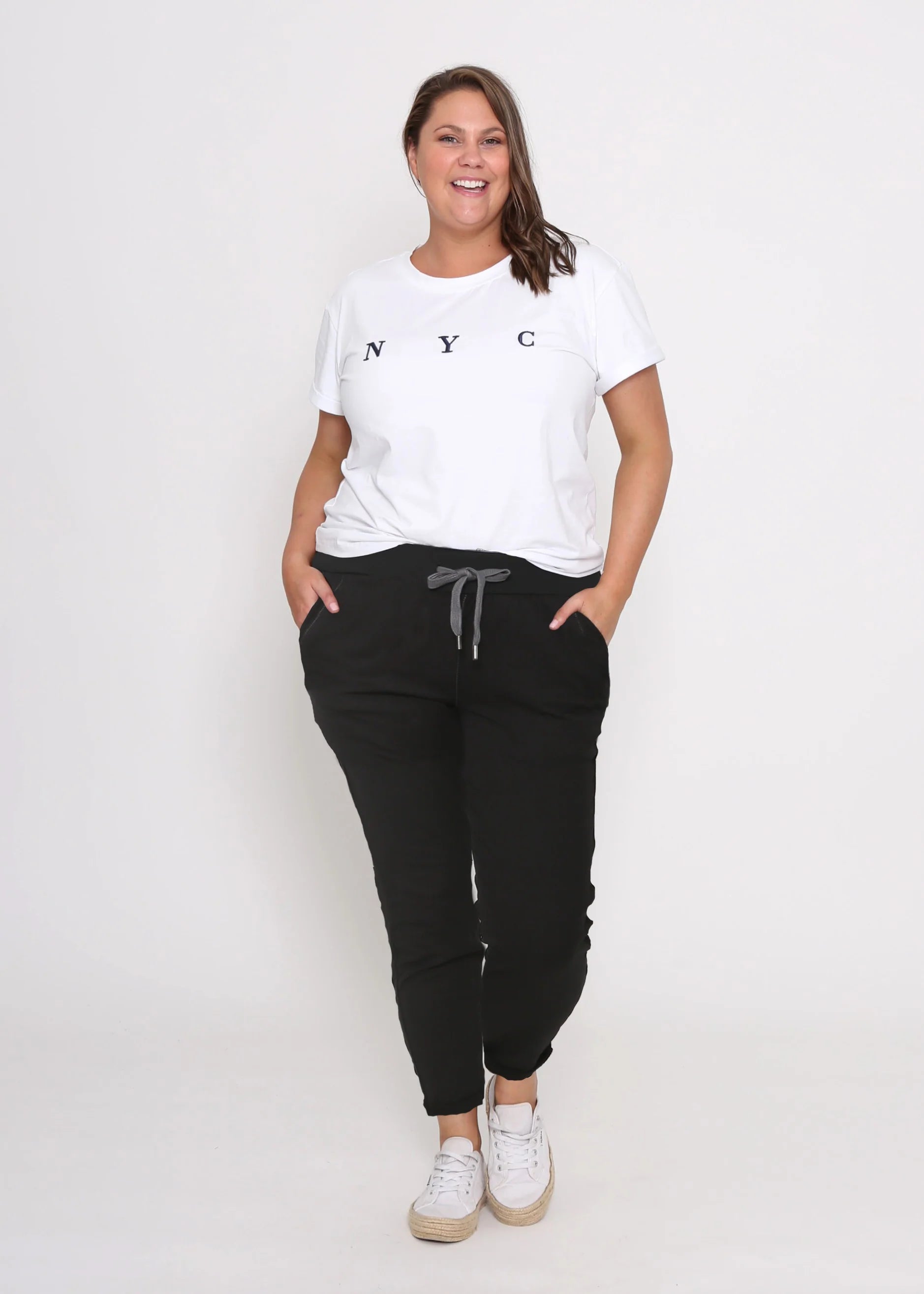 Experience ultimate comfort with the Riley Jogger! The relaxed fit and stretch fabric provide a beautiful fit and the elastic and drawstring waist ensure a comfortable fit for all body types. With functional side and back pockets, this jogger is not just stylish but also practical. Made with a blend of cotton and spandex, it's easy to care for and perfect for all-day wear.