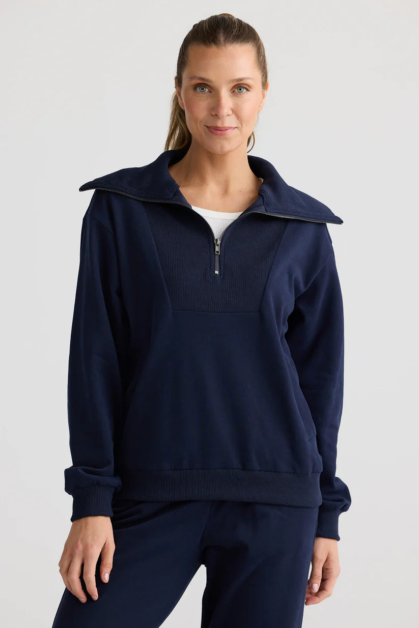 Experience ultimate comfort and style with our Serenity Jumper. Made with a relaxed fit and sweatshirt style, this half zip jumper features a ribbed collar panel for added sophistication. Stay cozy and chic in this luxurious piece.