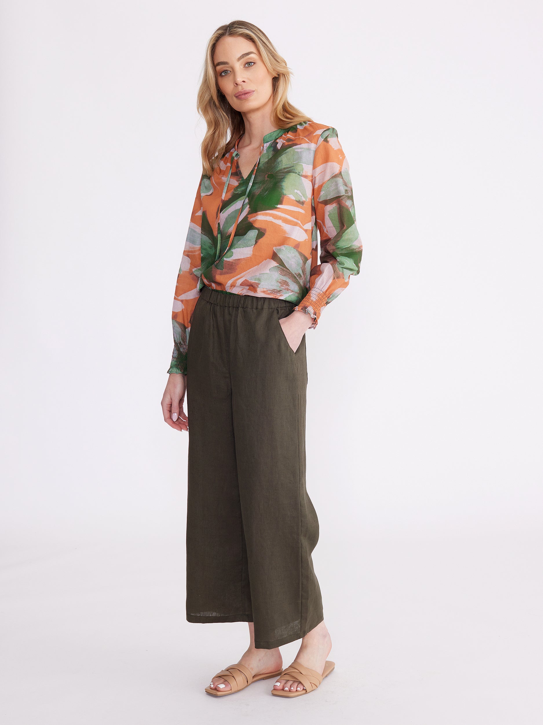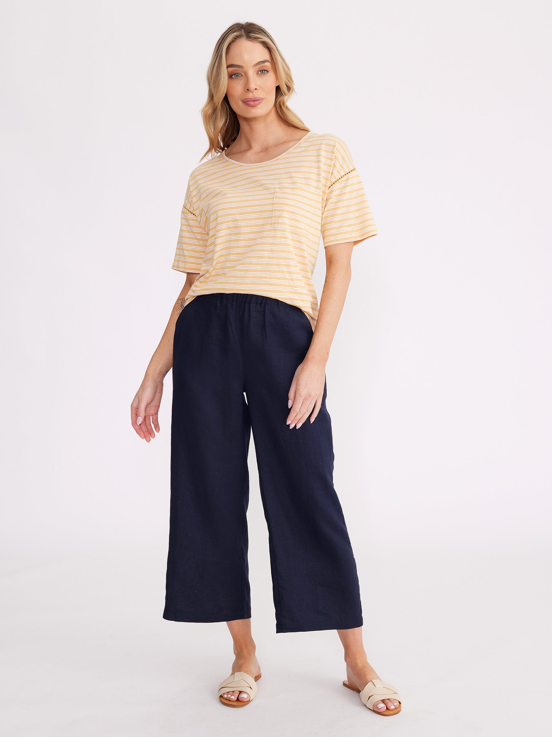 Our Essential Linen Pant is the perfect addition to your wardrobe. With an elasticated waistband providing a secure and comfortable fit, these wide 7/8th pants are contemporary and stylish. Crafted from our signature Yarra Trail Linen, they offer an effortless luxury that's ideal for all-day wear and breathability. Featuring front cut-a-way pockets and two back patch pockets, the Essential Linen Pant adds convenience and sophistication to your look.