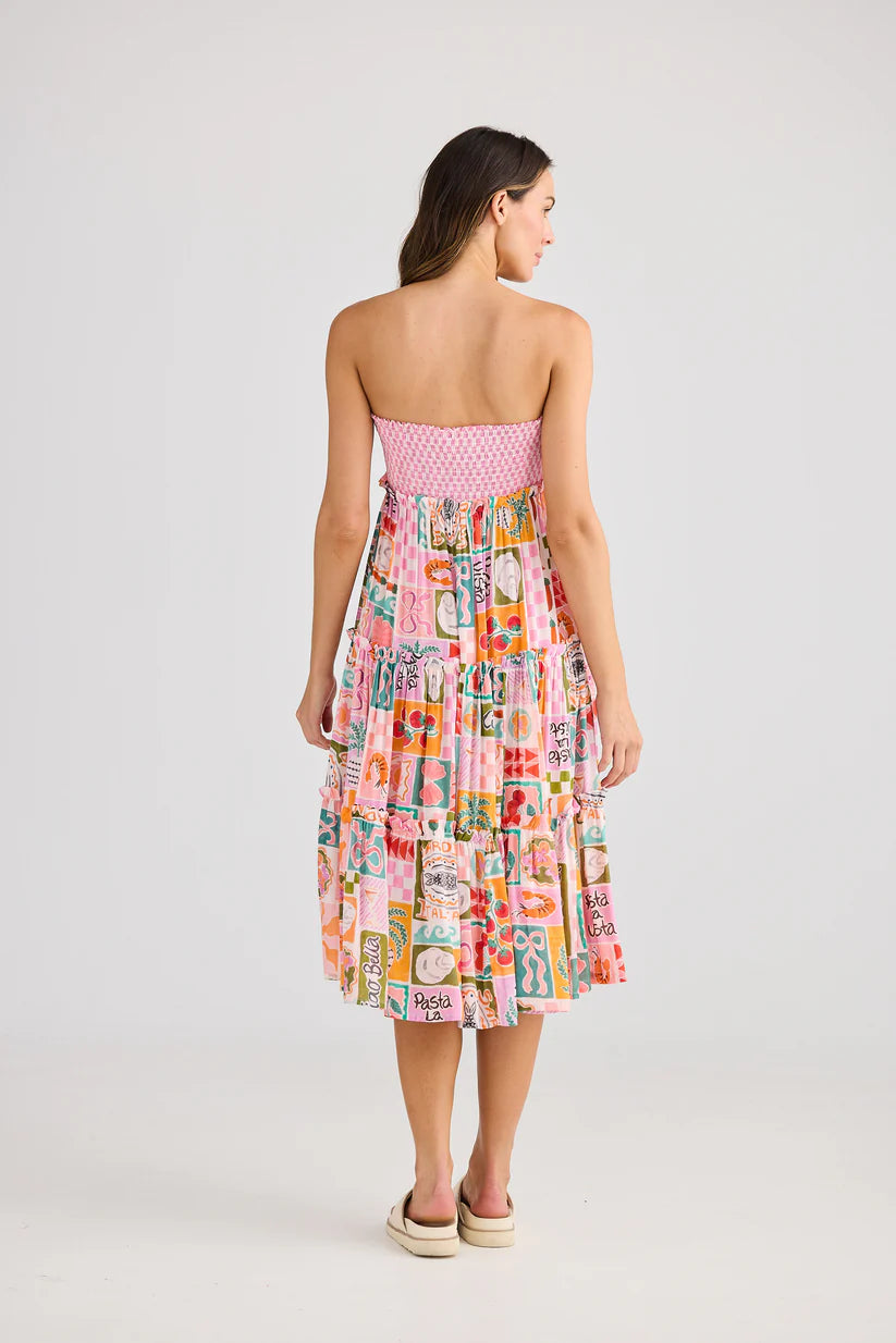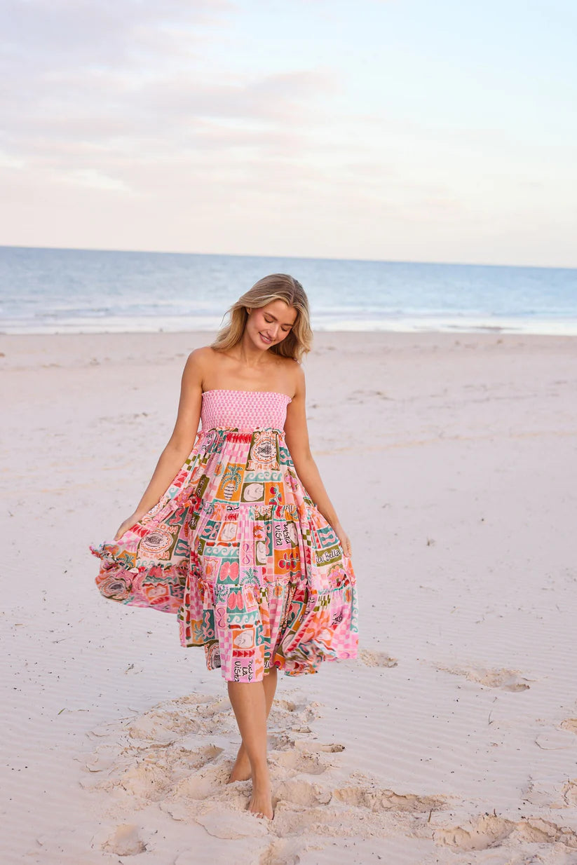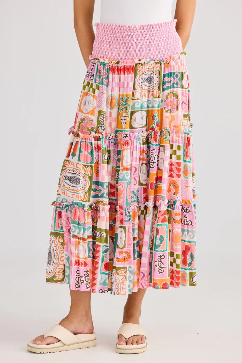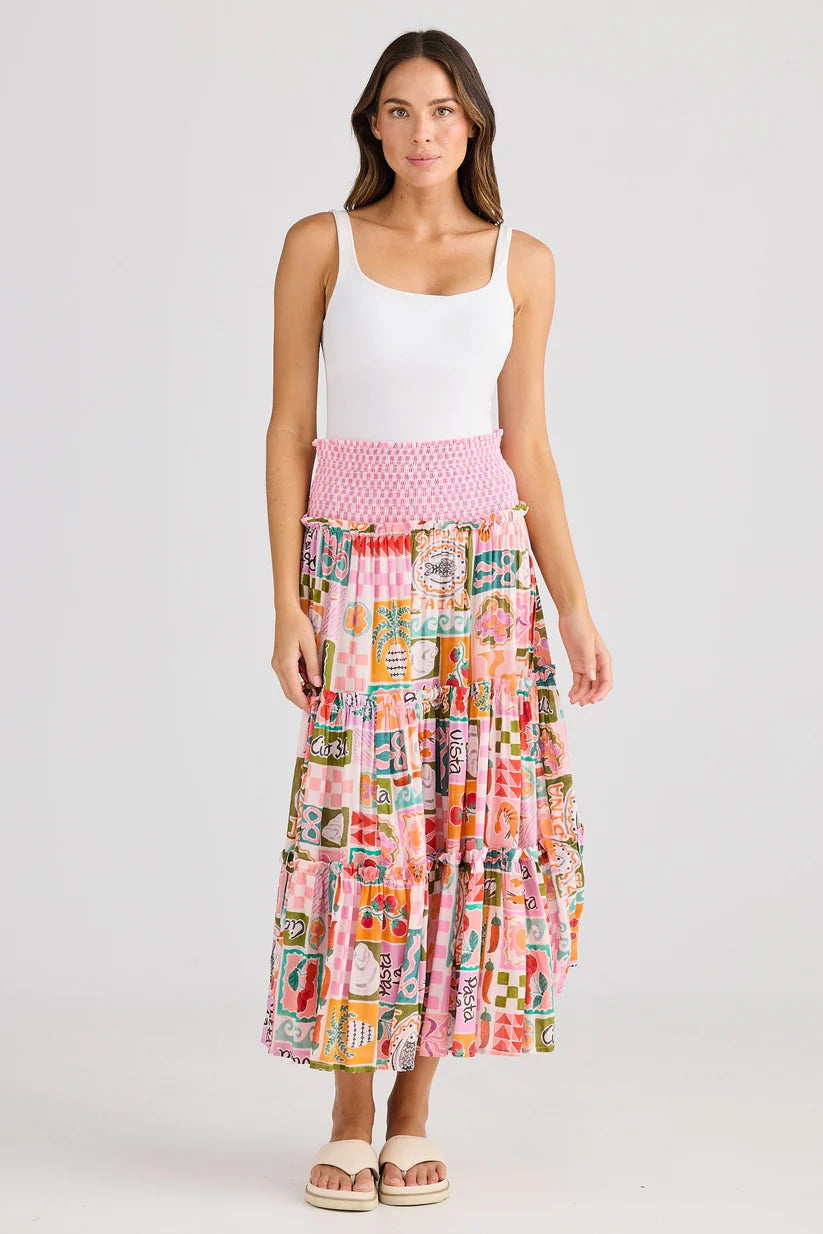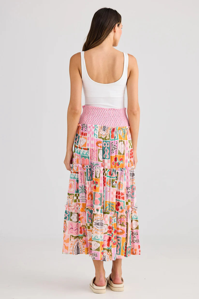 The Pier Skirt in Sardinia Summer by Holiday is the ultimate versatile piece for warm-weather styling. Wear it as a flowy tiered skirt by day, then transform it into a strapless dress for sunset cocktails. Designed in a lightweight, breathable fabric with a wide shirred waistband, it ensures comfort while flattering your shape. Playful ruffle trims and the exclusive Sardinia-inspired patchwork print, bursting with Mediterranean colours and motifs, make this skirt-dress a standout. Perfect for resort wear, beach days, and summer getaways, it’s a multiway essential for your holiday wardrobe.