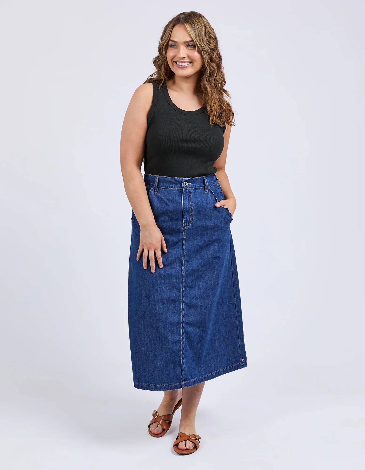 The Scallop Edge Denim Skirt elevates everyday denim with refined details that make a statement. Crafted from rigid denim, this midi-length piece features delicate scallop edging along the pocket openings—a thoughtful design element that adds understated elegance. The elasticated back waist ensures comfortable all-day wear while maintaining a polished silhouette. Perfect for those who appreciate quality construction and distinctive styling touches that set their wardrobe apart.