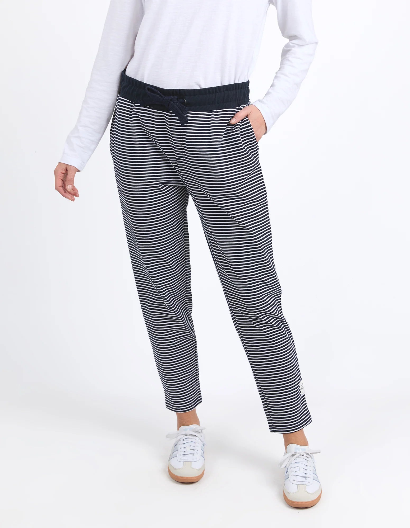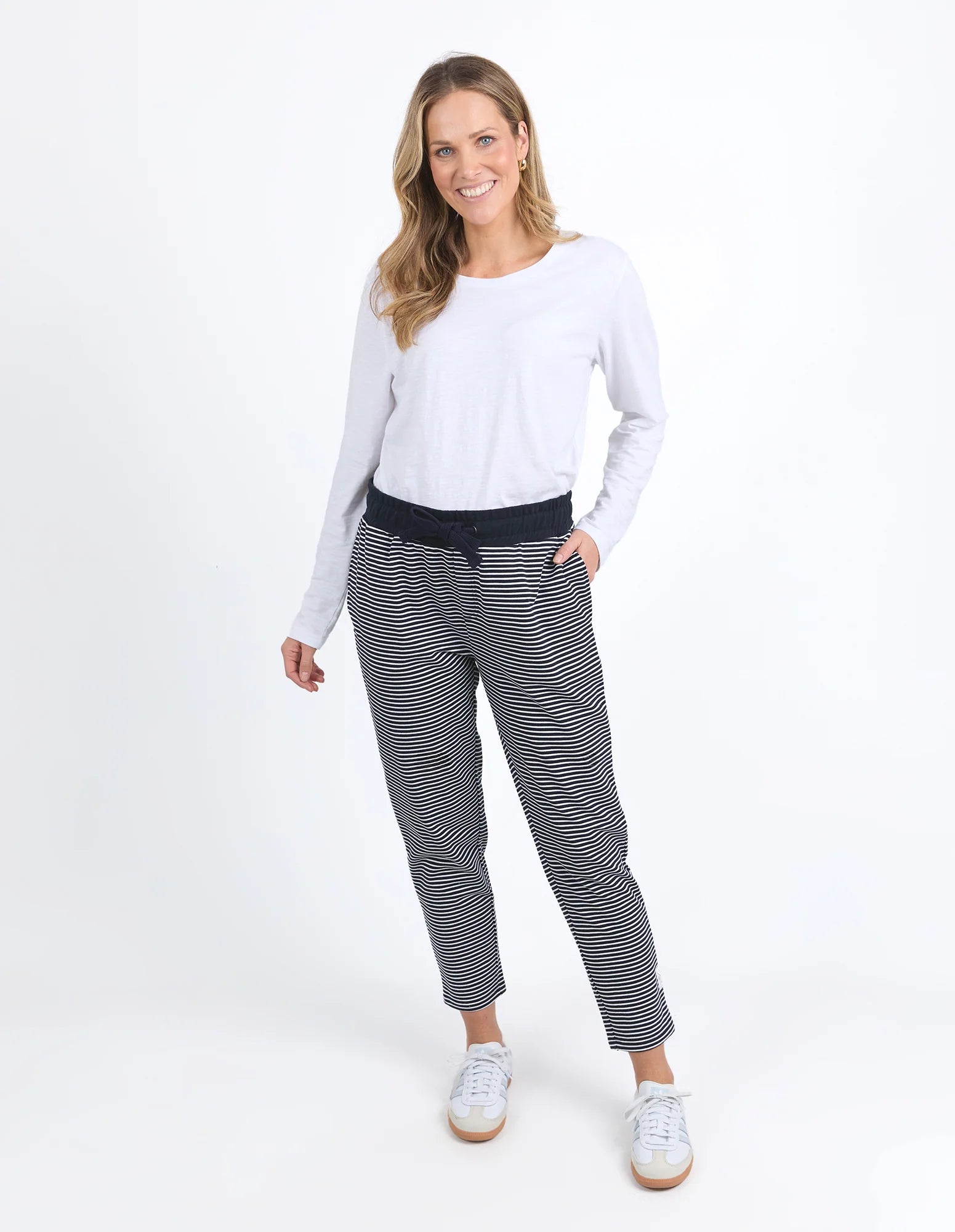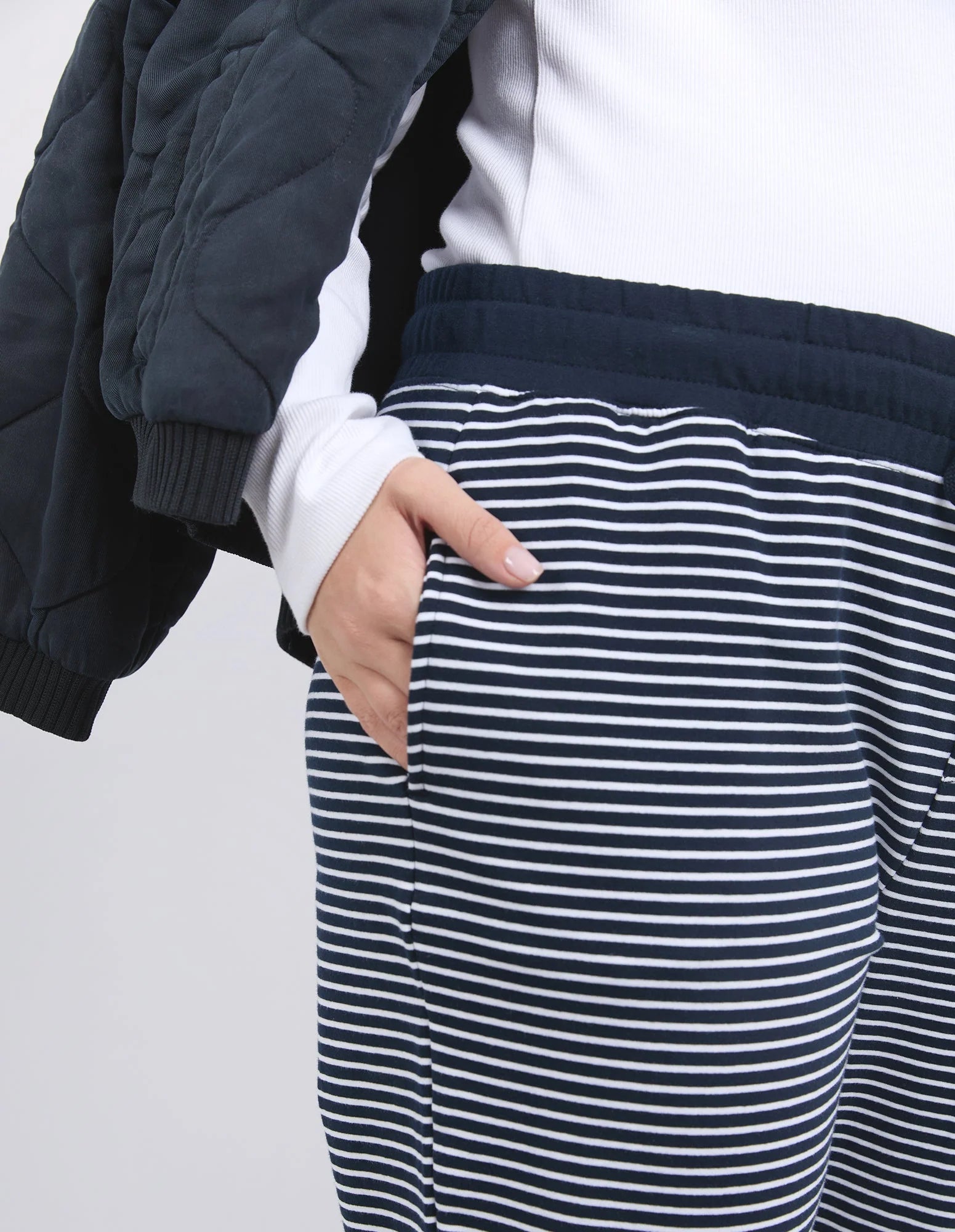 Say goodbye to creased and uncomfortable travel days with our Travel Track Pants. These luxuriously soft pants feature an elastic waist with drawcord for the perfect fit, along with side seam pockets for all your essentials. The yarn dye stripe adds a stylish touch, making them perfect for long-haul flights or any day you want to feel cool, calm, and comfortable.