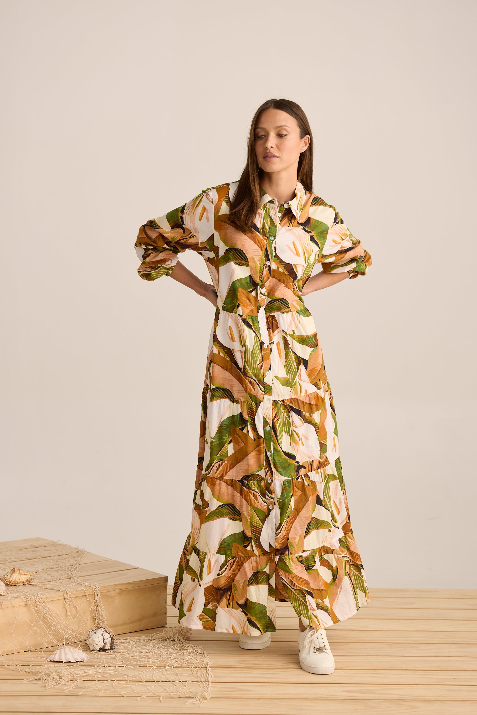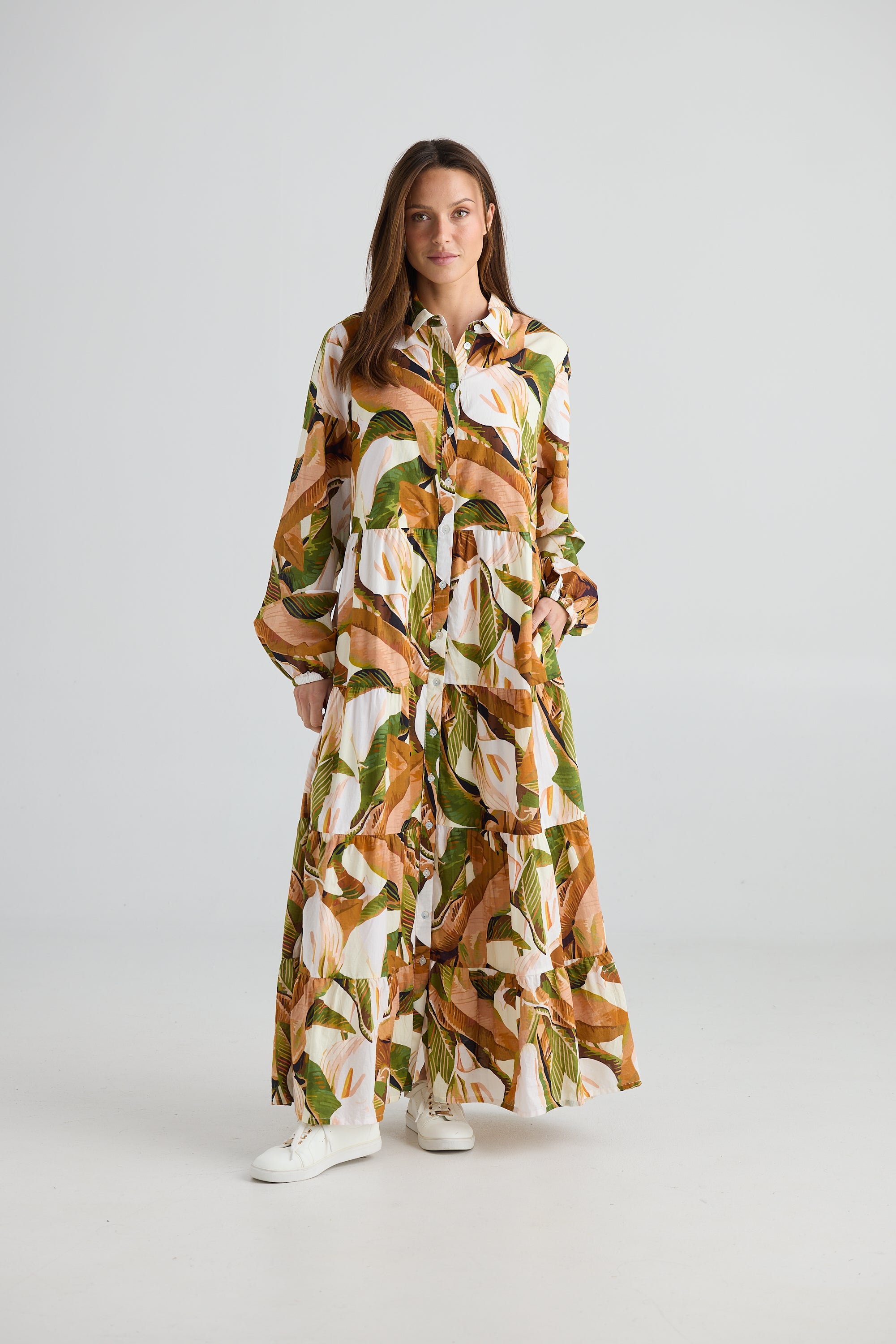 Add some excitement to your wardrobe with our Fly Away Dress! Featuring a classic collar and button front, a tiered skirt design, and in-seam pockets for convenience. The back yoke with pleat adds a touch of elegance, while the midi length is perfect for any occasion. Made with a soft and comfortable 100% cotton. Elevate your style with this must-have dress!