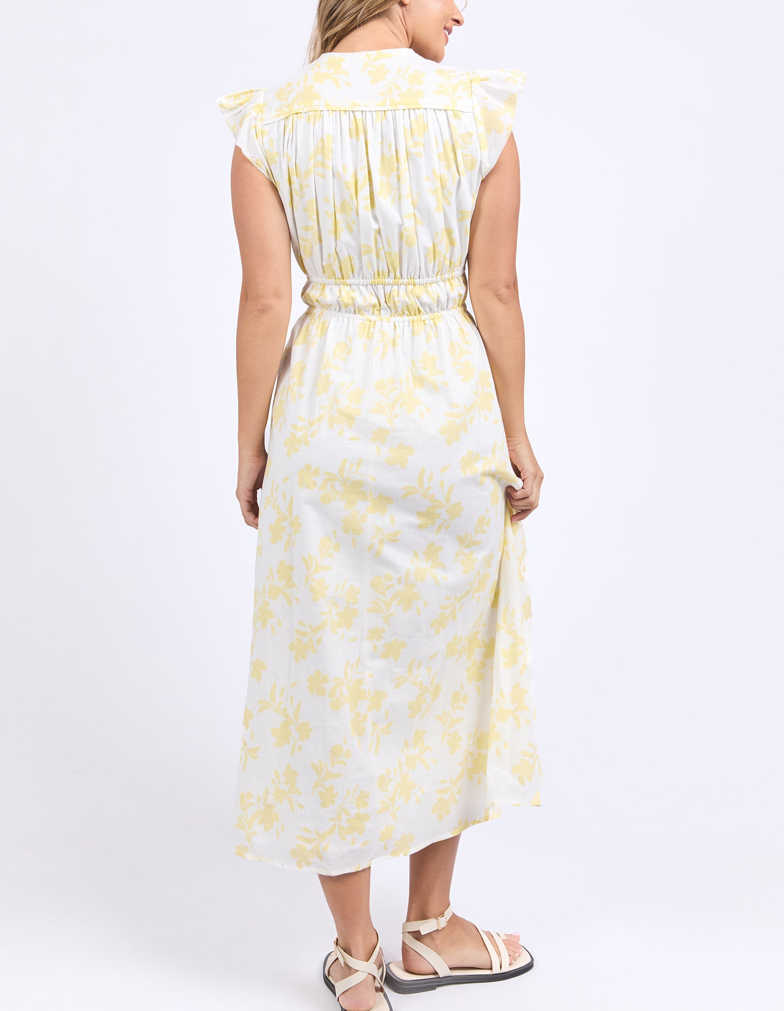 Step into sunshine with the Sierra Dress rocking our exclusive Foxwood print. Made from 100% cotton, it’s light, breathable, and moves with you thanks to the comfy elastic waist. With fun sleeve frills adding extra flair, this dress is made for turning heads wherever you go.