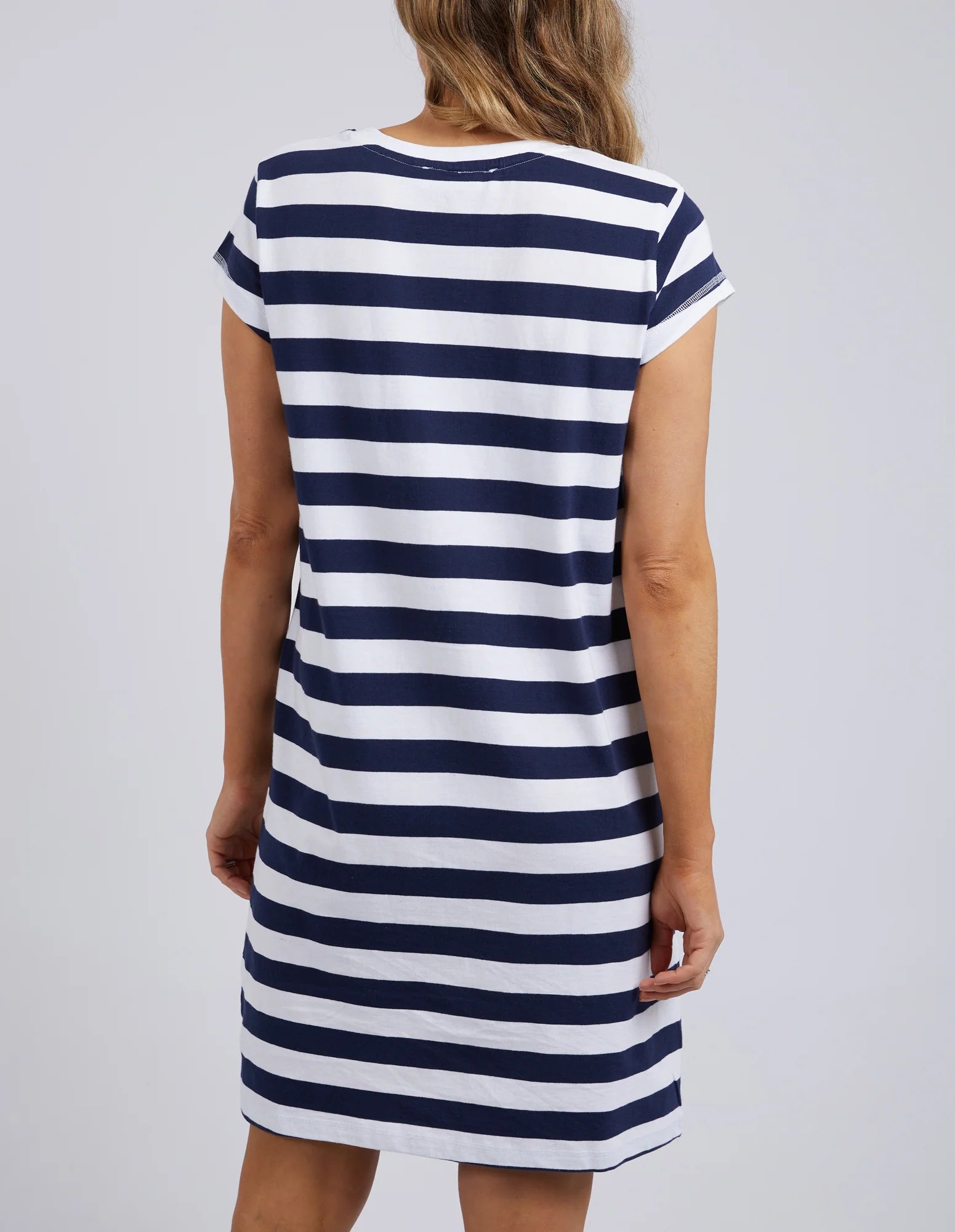 Hit the streets in style with our Signature Stripe Tee Dress. Made from light weight vintage washed cotton jersey, this dress features a playful Foxwood Signature logo on the chest and a trendy yarn dyed stripe. Perfect for everyday wear, this cute dress boasts a round neckline and easy-to-wear 100% cotton fabric. Step up your fashion game with this must-have piece!