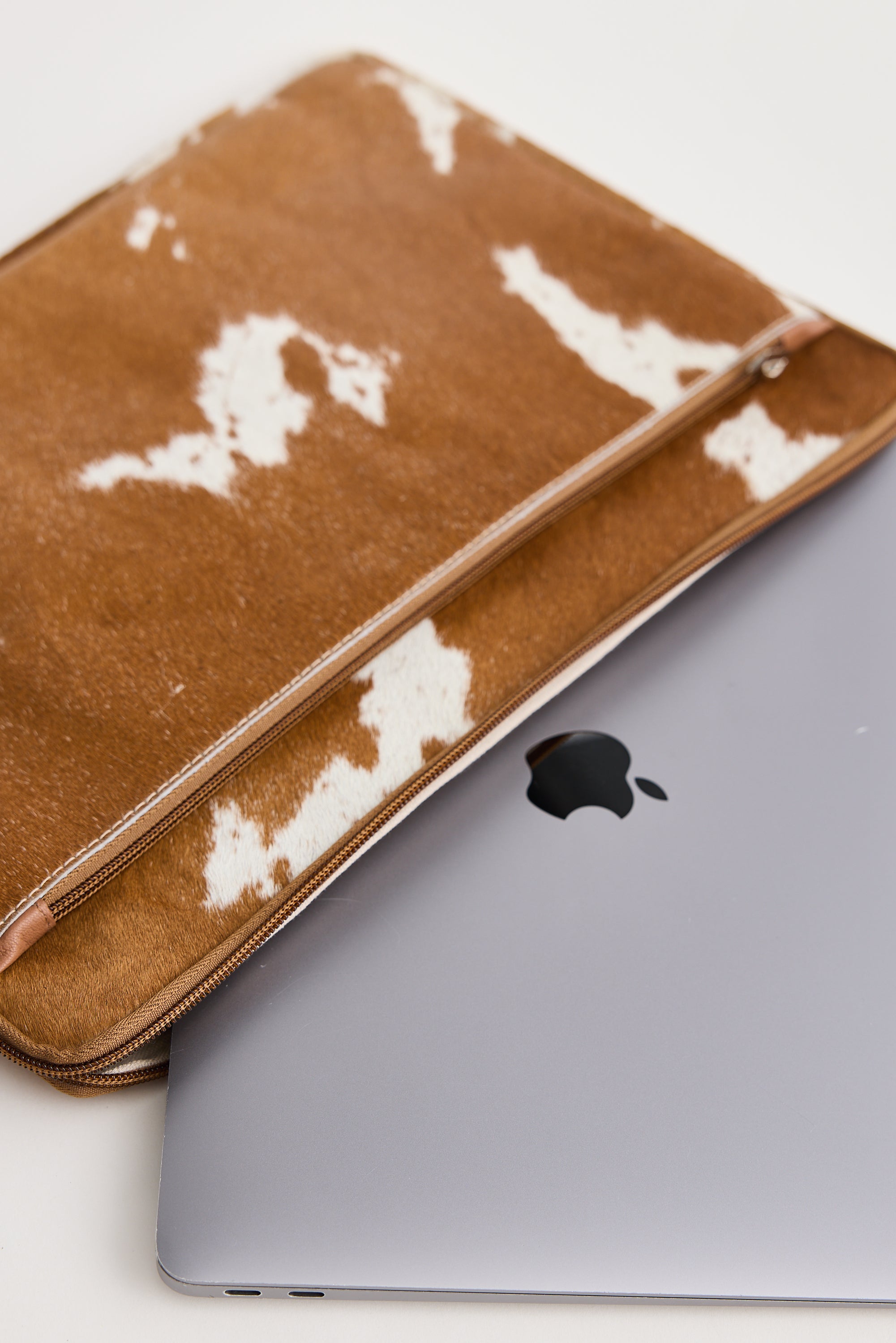 Keep your tech safe in style. Made from genuine cowhide leather, each case has a one-of-a-kind pattern. Fits a 13” laptop with padded protection + secure zip. Finished with sleek silver hardware — no two are ever the same!