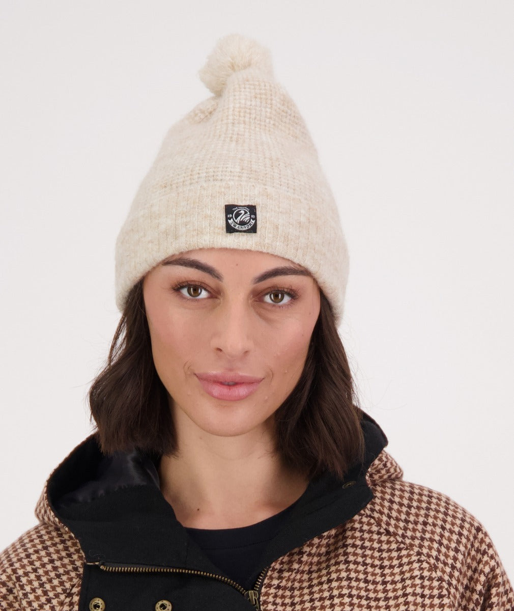 Stay cozy and stylish with the Hutton Beanie. Made from a blend of mohair and wool, this beanie features a waffle knit design and a brand patch for a touch of uniqueness. Perfect for any chilly day, this beanie will keep your head warm and your outfit on point.