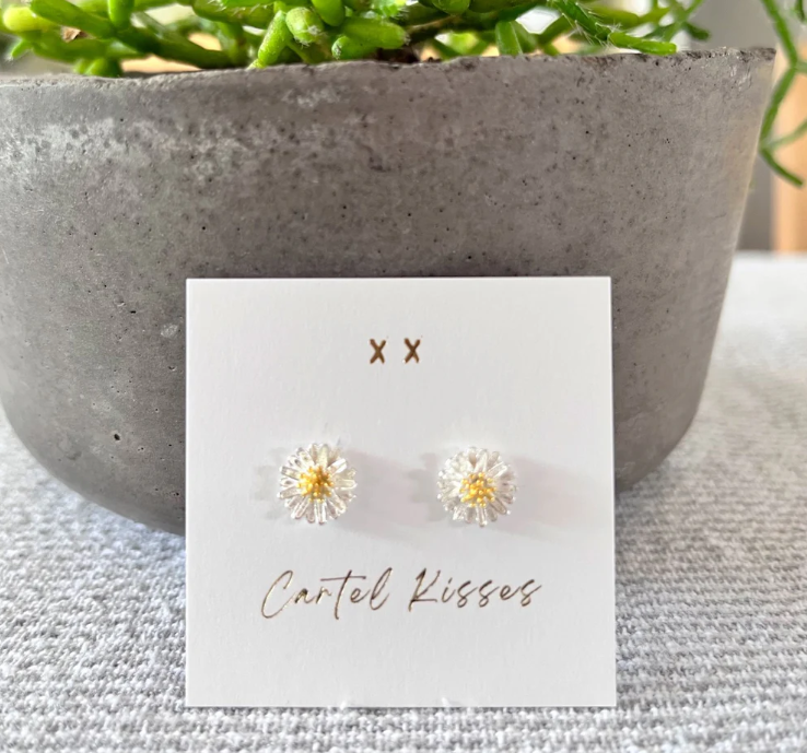 Indulge in the delicate beauty of Cartel Kisses. With intricate detailing on each stud, these dainty earrings are the perfect touch of luxury. Made with hypoallergenic stainless steel and available in gold or silver, they're perfect for sensitive ears. Comes with a gift bag for an extra touch of elegance.