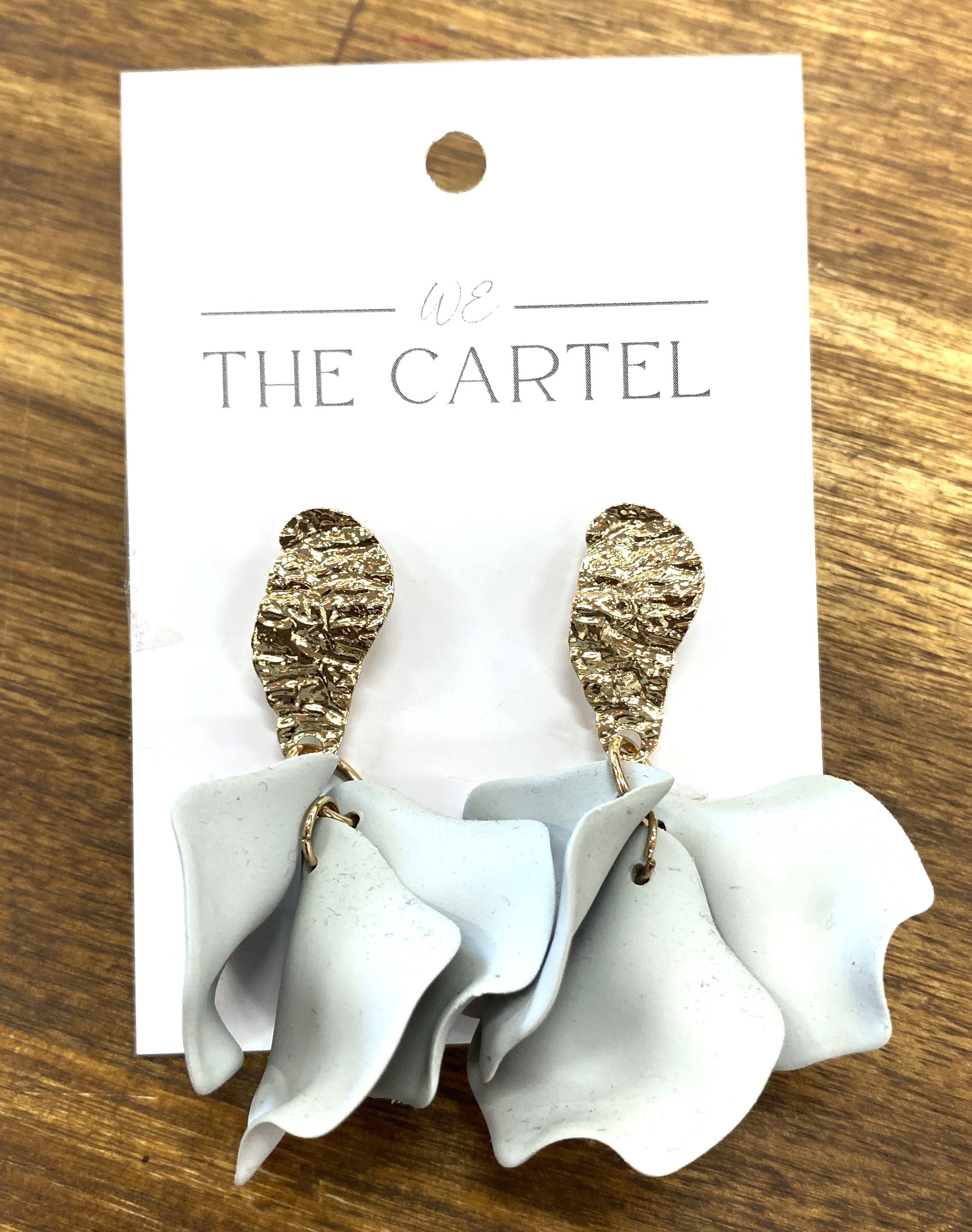 Accessorize with a dash of playfulness with our Fleur Earrings! Made of gorgeous distressed gold-colored metal, these earrings feature delicate petals for a unique touch. Embrace the quirky charm and add a touch of fun to any outfit with these statement earrings.