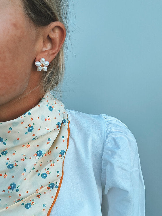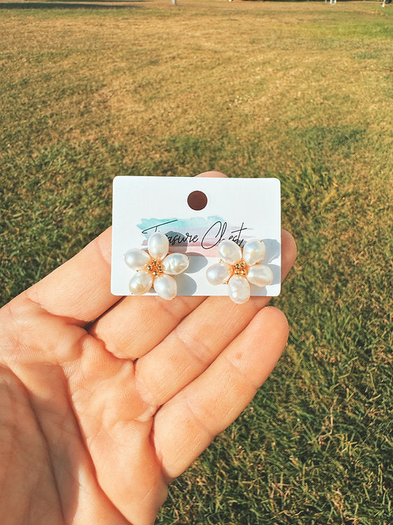 Delicately crafted in the shape of a flower, these earrings feature lustrous freshwater pearls set in 925 sterling silver with a warm gold plating. Lightweight and elegant, they add a touch of natural beauty to any outfit.