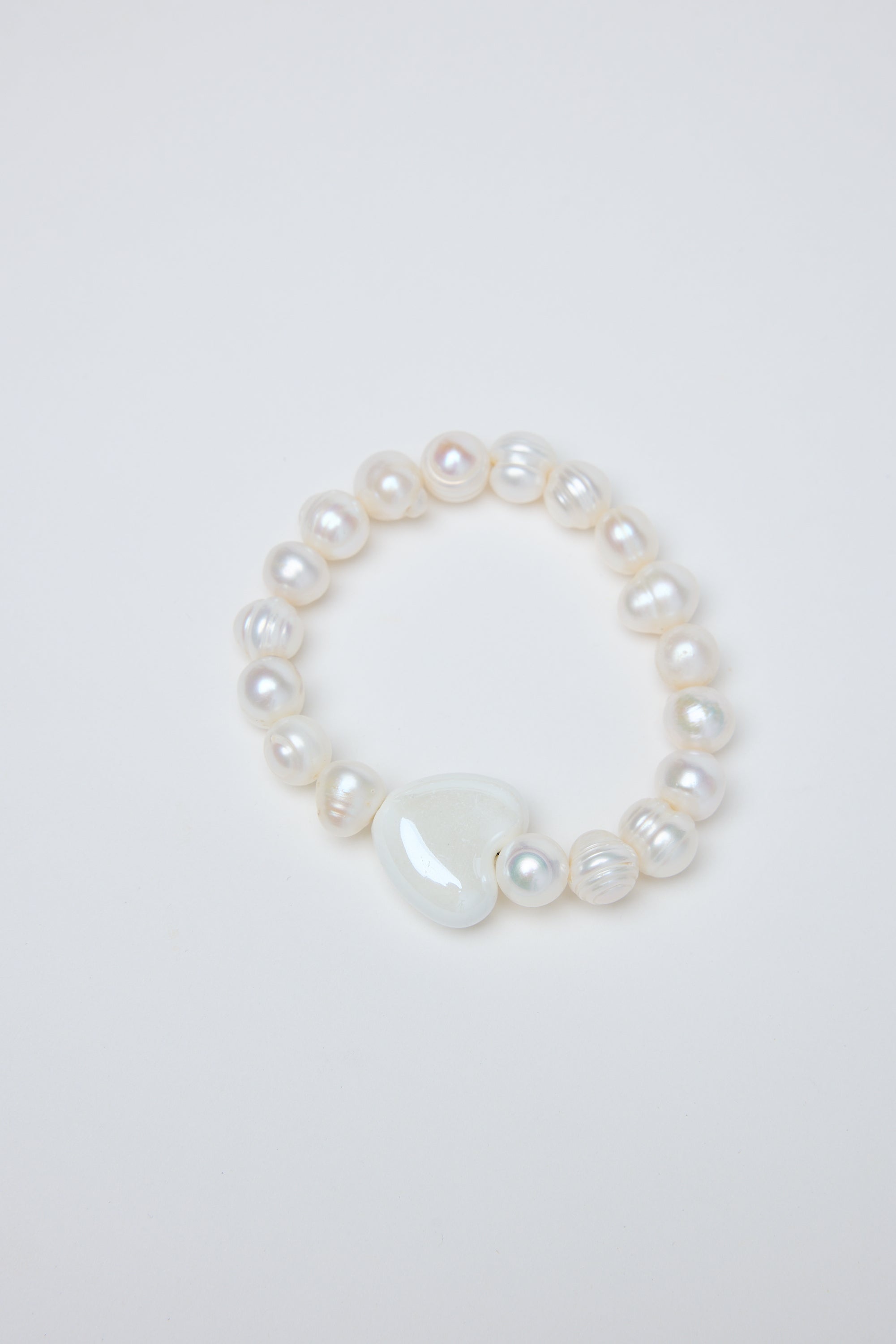The Pearly Heart Bracelet is a fun and flexible stretch bracelet accented with a charming heart bead and fresh water pearls. Perfect for stacking with your other favorite bracelets, it adds a playful sparkle that lifts your everyday style with effortless flair.