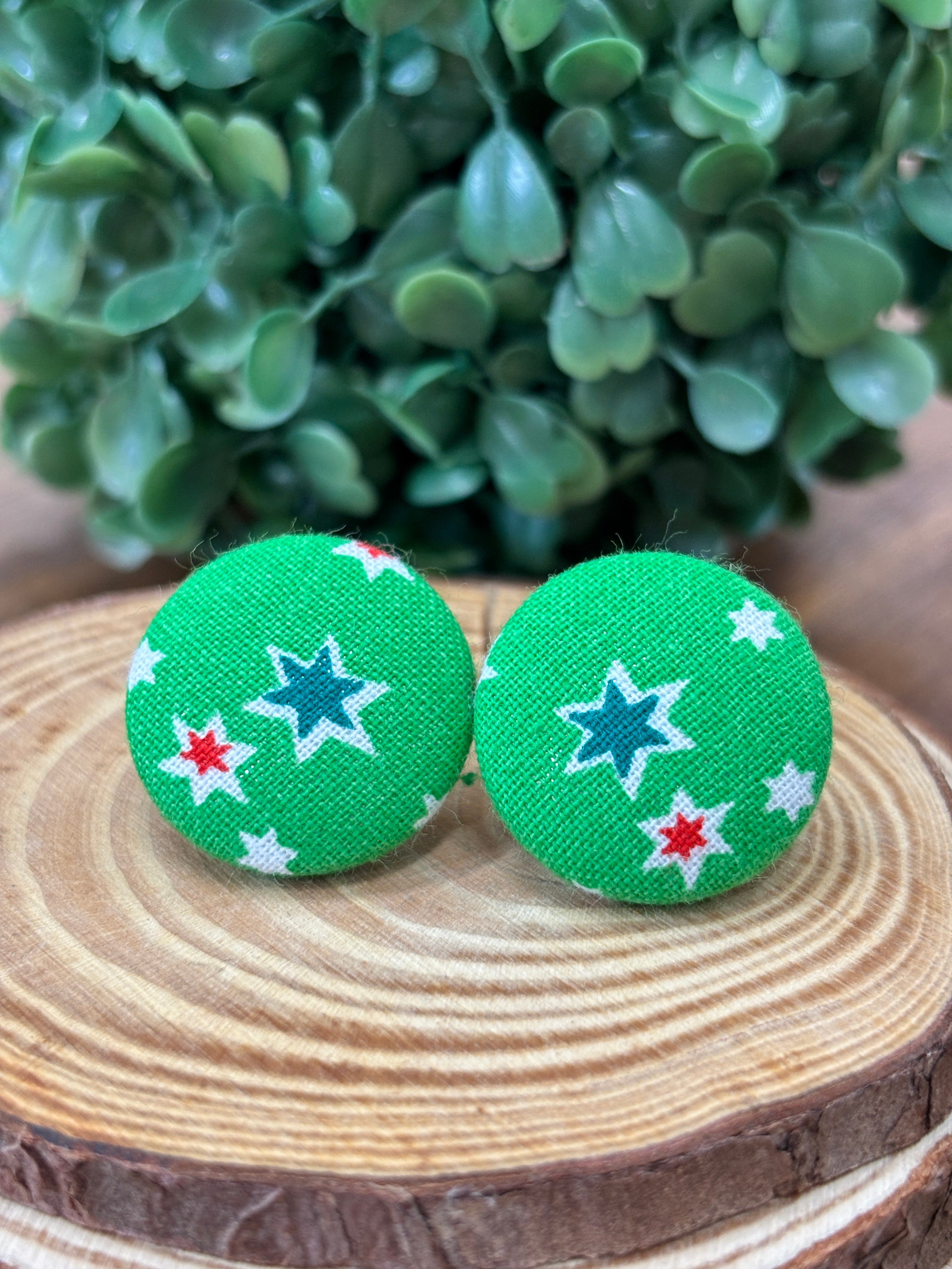 Add some festive flair to your wardrobe with our Xmas studs! Available in small and large sizes, these handmade studs feature a stainless steel post and back for durability and a 100% cotton fabric covering for a comfortable fit. Perfect for spreading holiday cheer all season long!