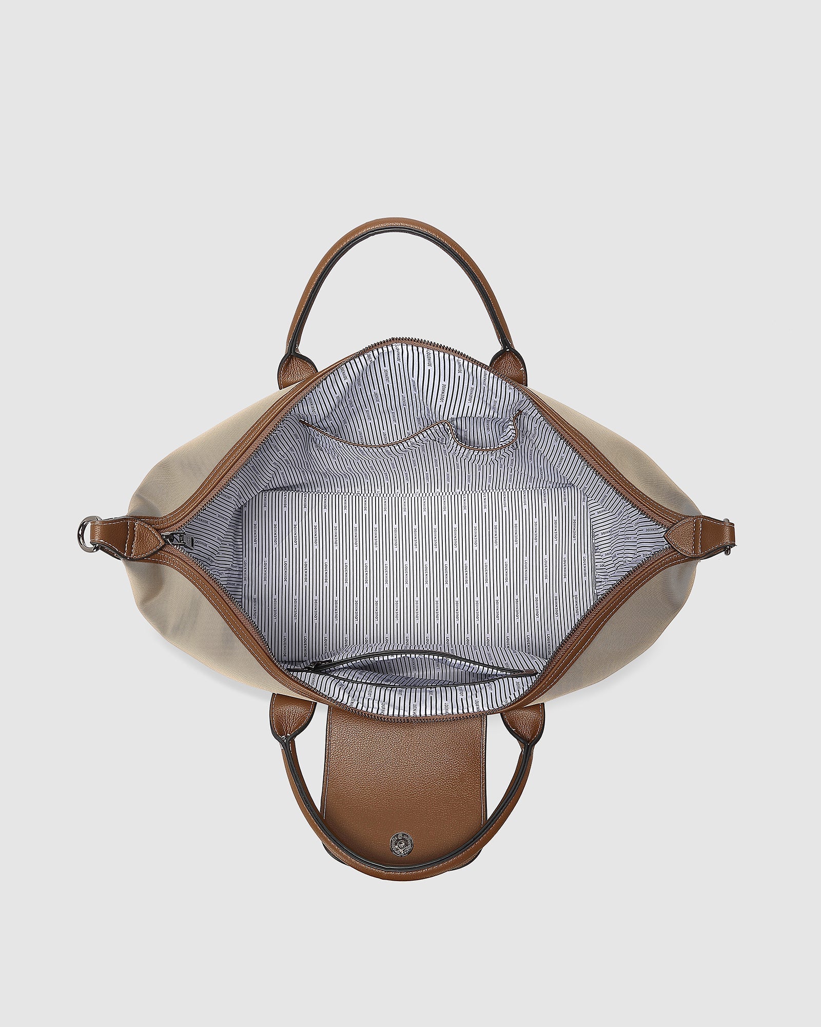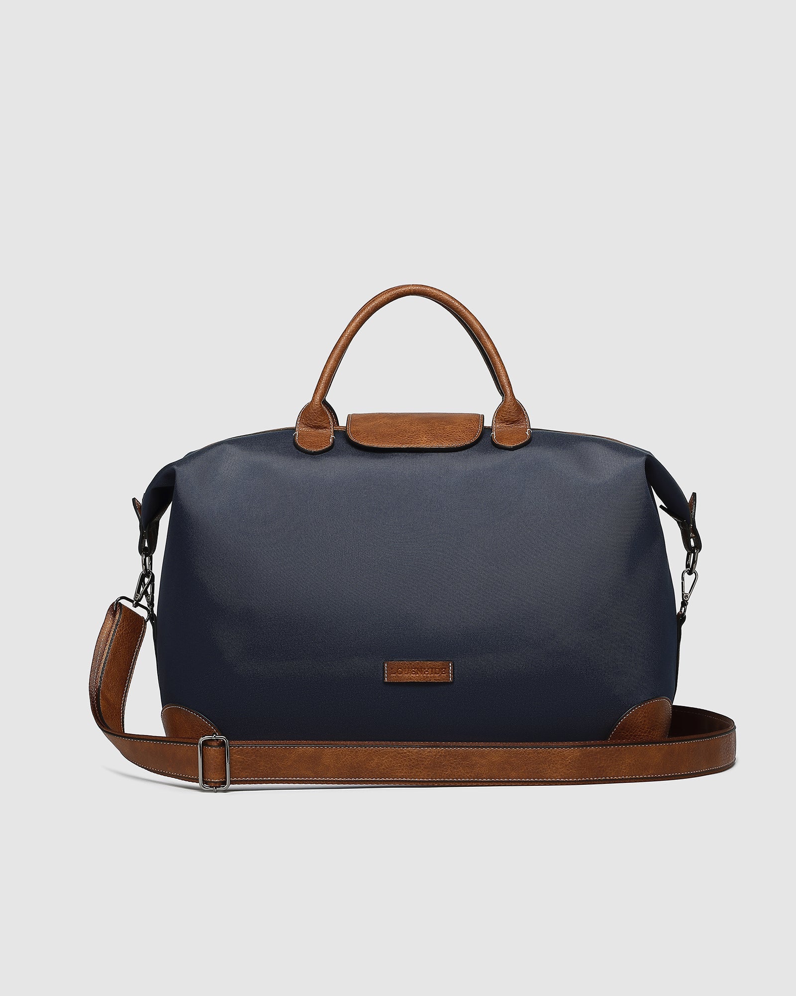 Embrace any adventure with the Hamilton Weekender Bag by Louenhide. With luxe two-tone detailing and a fusion of vegan leather and nylon, this unisex travel bag exudes style and practicality. Stay organized and find your essentials easily with internal pockets. Your ultimate companion for daily adventures and jet-setting across the globe!