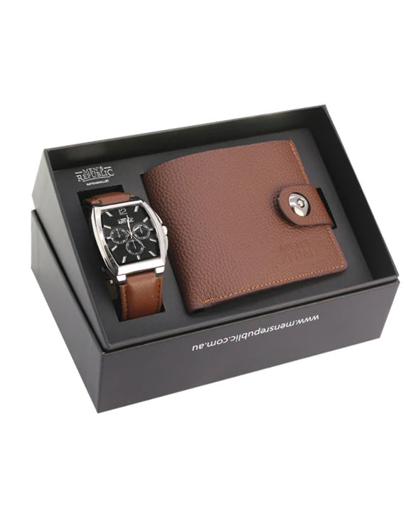 Indulge in luxury with our Men's Republic Watch & Wallet Set. With a retro design and modern finish, this set exudes classic charm and style. The perfect gift for a discerning man who appreciates the finer things in life. Includes an Alloy Watch, Leather Wallet, and Signature Gift Box.