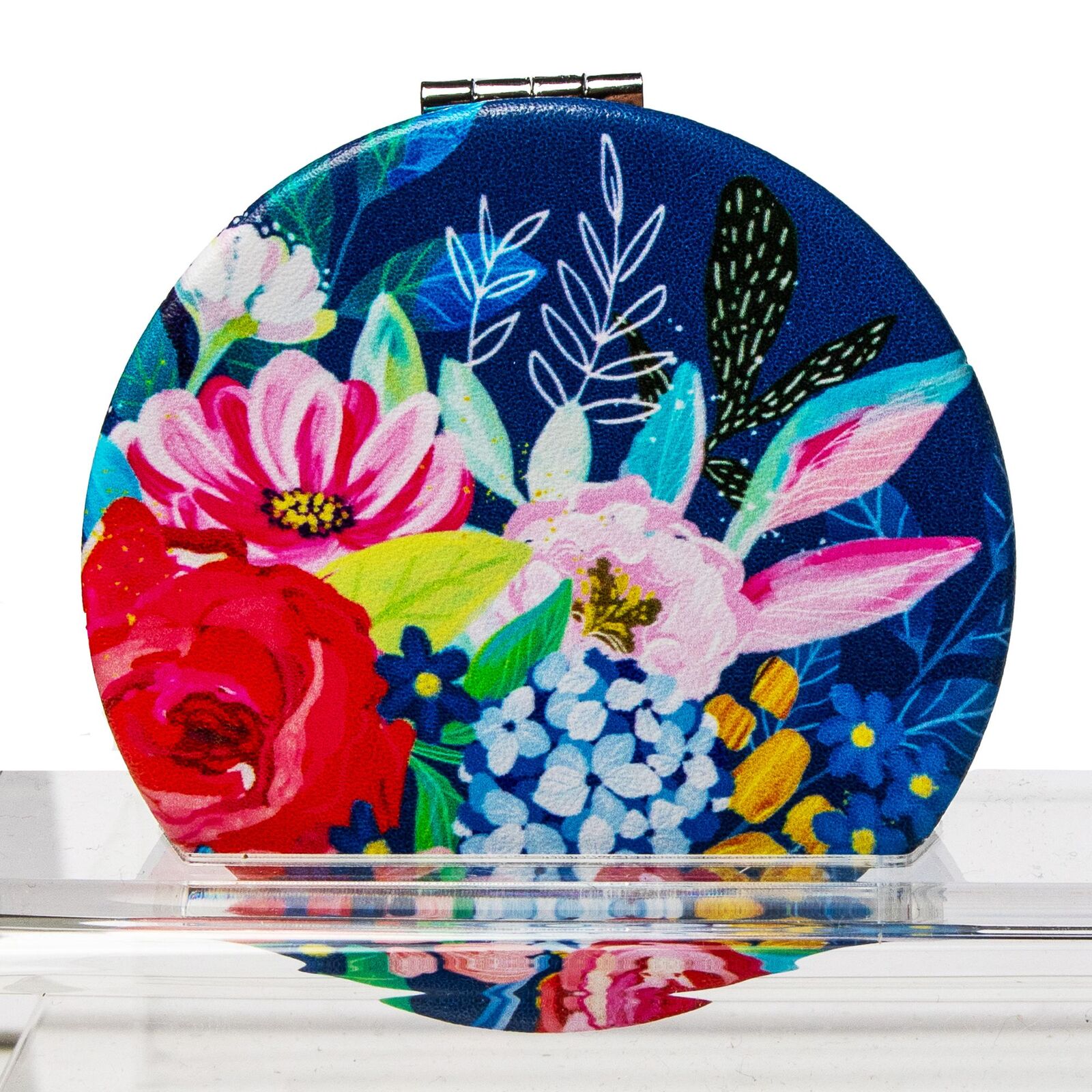 Stay stylish and prepared on-the-go with our Compact Mirror! Adorned with a stunning floral design, this essential handbag accessory features a double-sided mirror, perfect for quick touch-ups. The pocket-sized mirror measures 1.0 x 7.2 x 7.2cm and adds a touch of beauty to any outing.