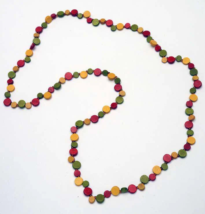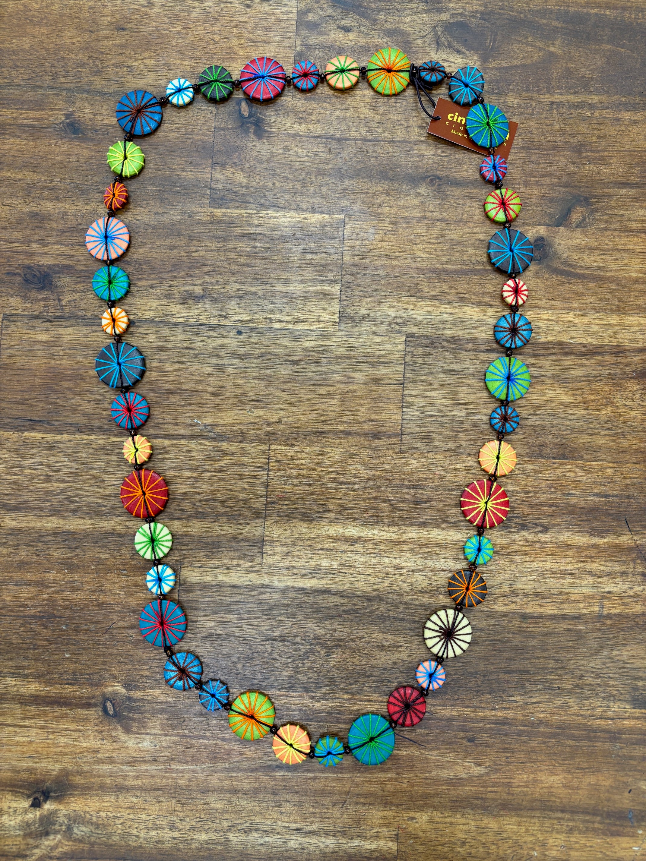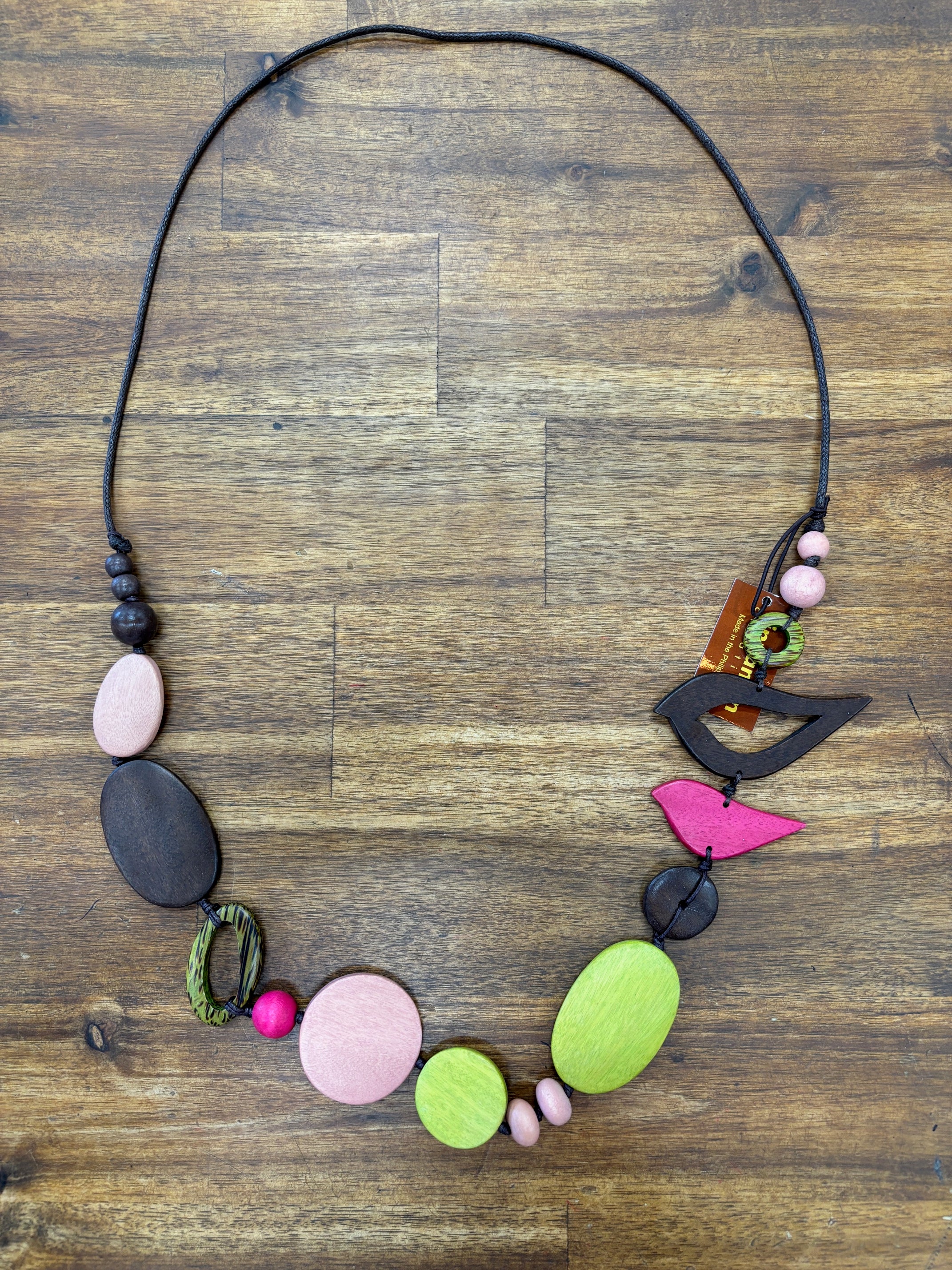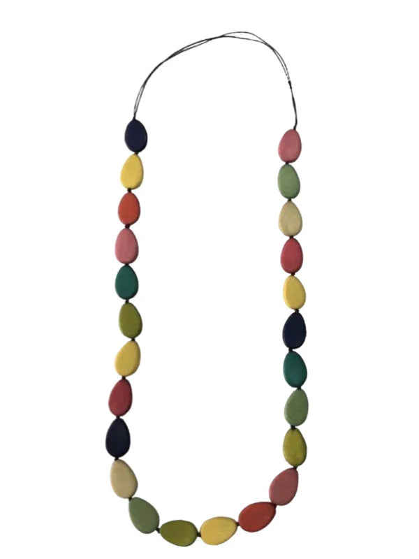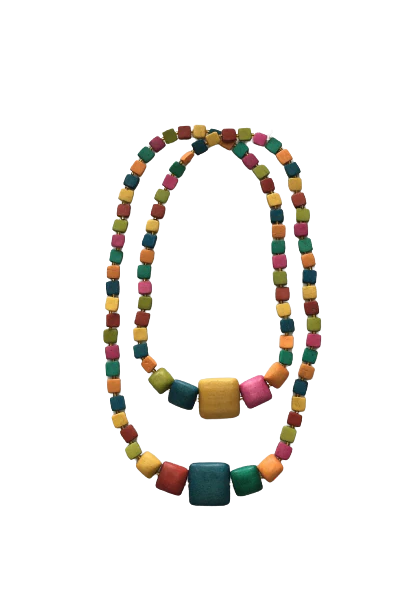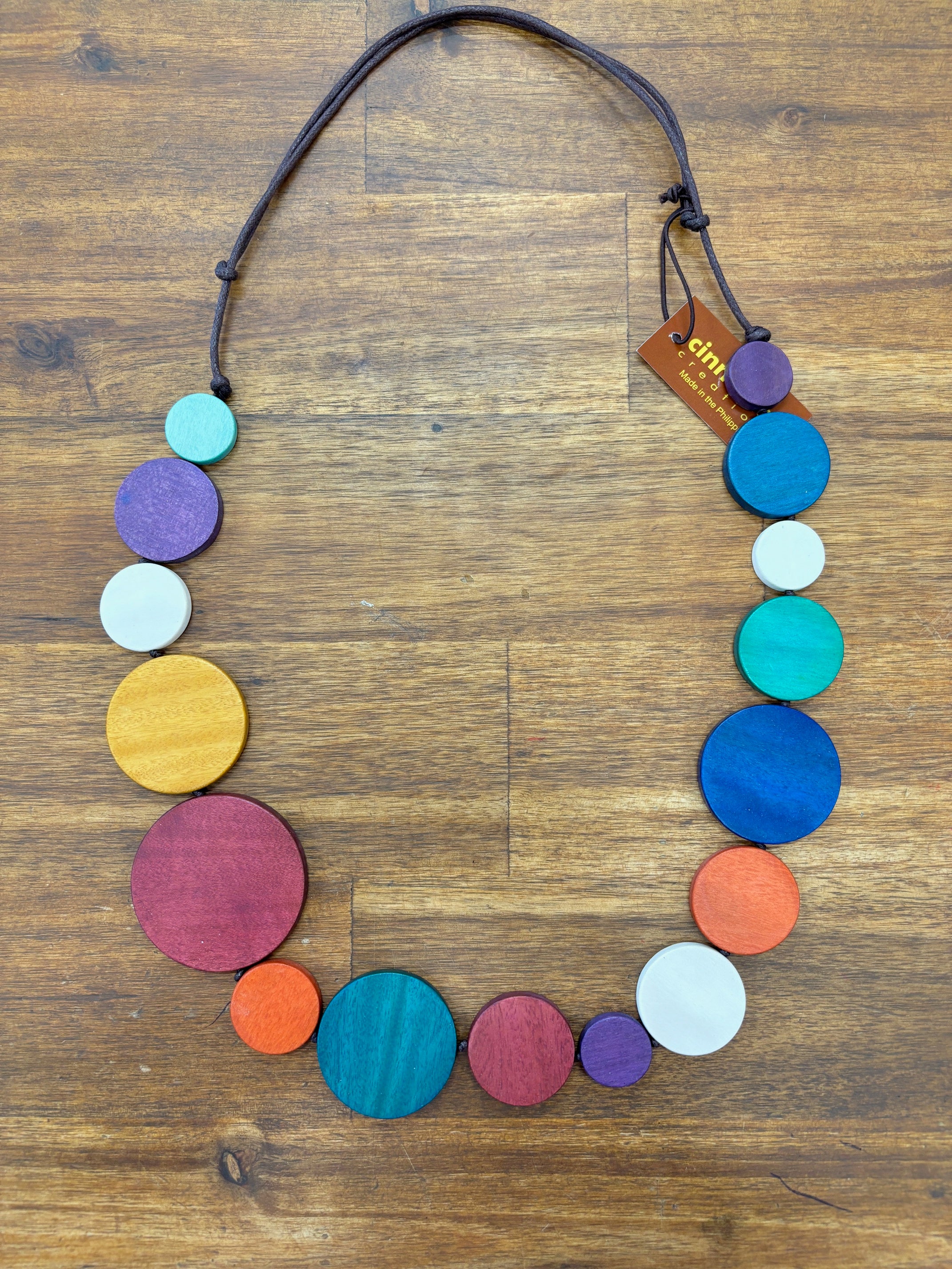 Crafted with care, our timber necklaces combine natural beauty with timeless style. Each piece is made from sustainably sourced timber, shaped into smooth, lightweight discs and dyed in a variety of vibrant colors. The rich texture of the wood adds a rustic charm, while the colorful designs bring a modern, playful touch. Versatile and easy to wear, these necklaces are perfect for layering or making a statement on their own.