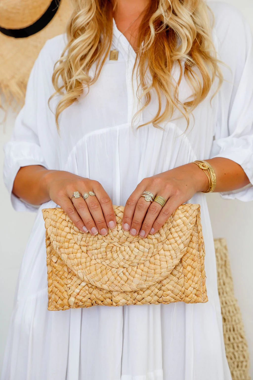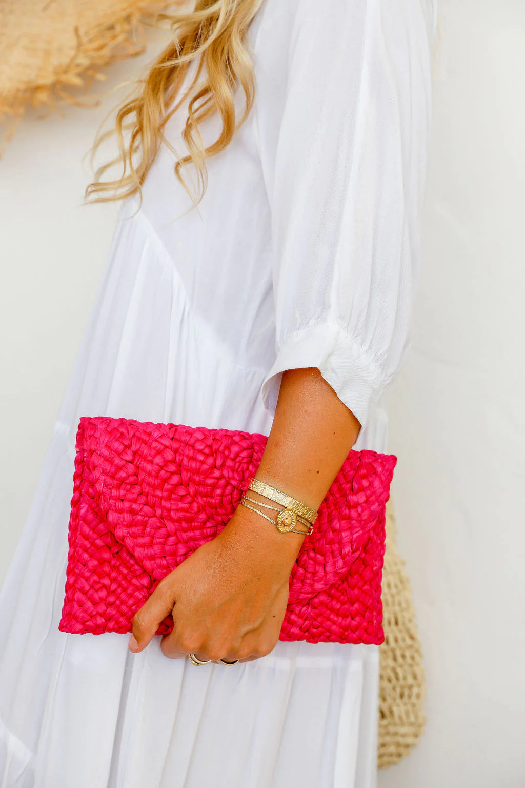 Add an effortless touch of luxury to any look with these gorgeous woven clutches from Free Spirit. Crafted from raffia material and featuring magnetic closures, these lined, lightweight envelopes are the perfect accompaniment to your evening ensemble. Flaunting a show-stopping 26cm x 16cm silhouette, be confident that your essentials will stay safe and sound.