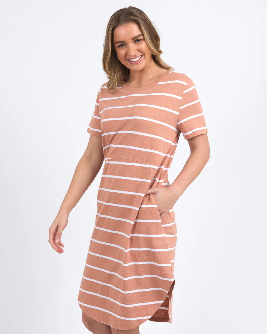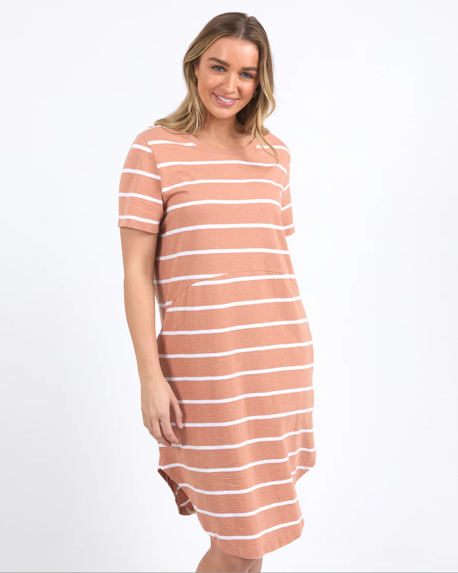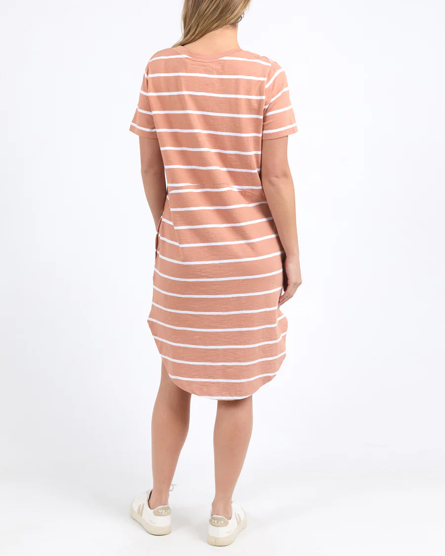 The Bay Stripe Dress from Foxwood is a timeless wardrobe staple. Crafted from a lightweight fabric, this easy-fit, throw-on-and-go piece offers effortless elegance for school, shopping, lunch, or a holiday trip. Dress it up with heels and statement jewellery for a luxe look.