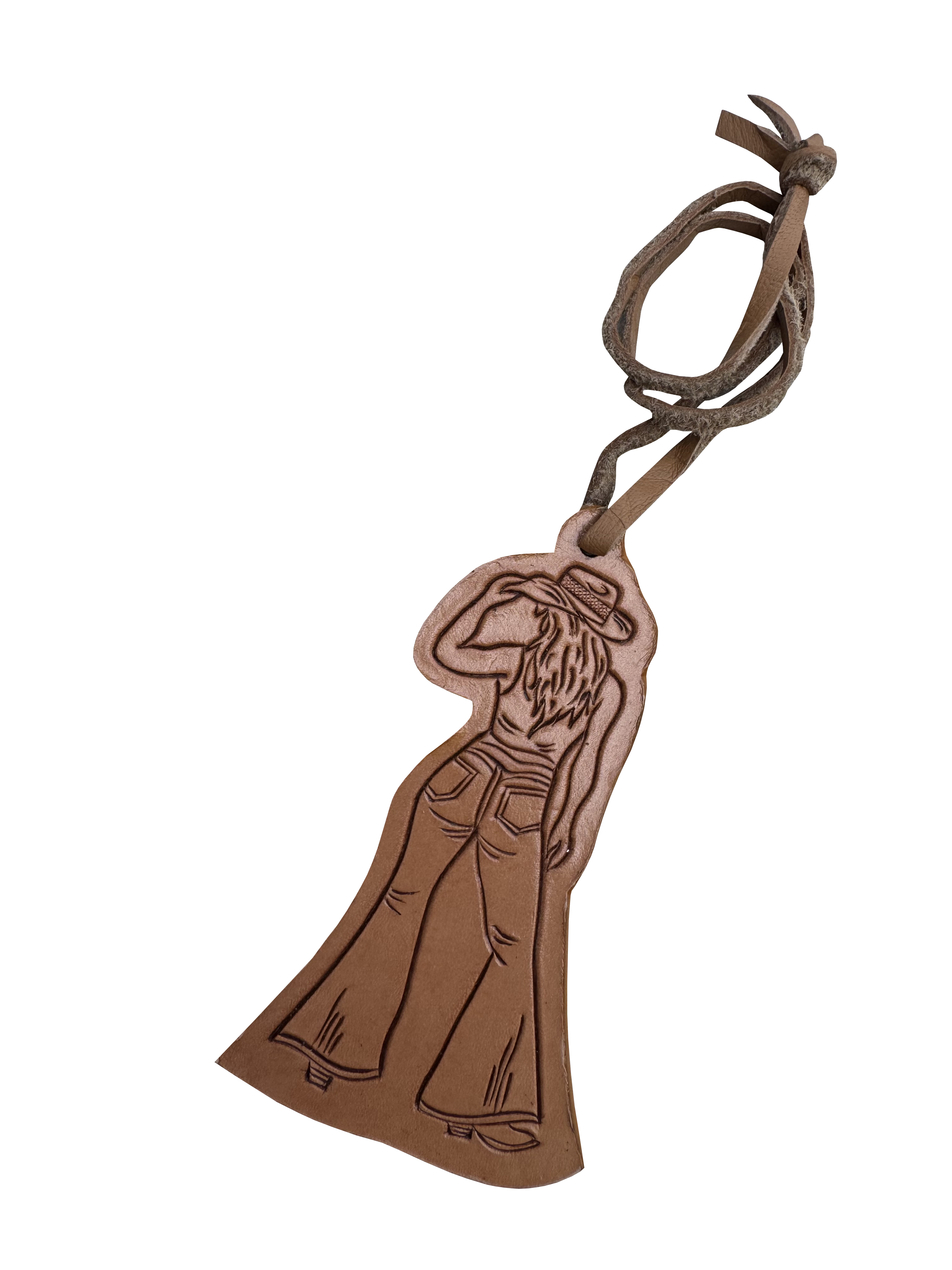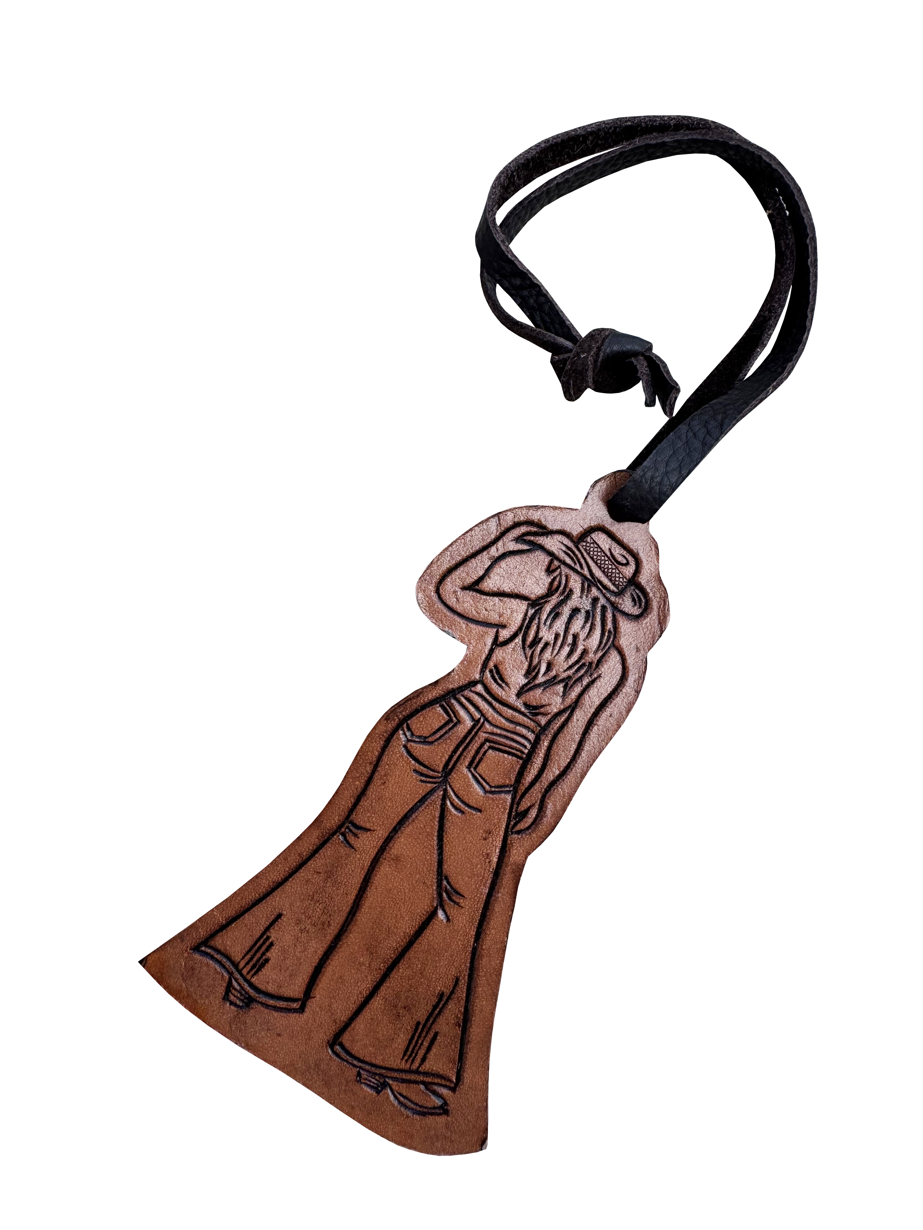 Add a playful twist to your favorite cowhide bag with this unique Cowgirl Tooled Leather Bag Charm. Handmade with genuine leather, each charm is carefully cut and intricately tooled by hand, making every piece one of a kind. The perfect size to dangle from your bag, it brings a little western charm and personality to your daily style.