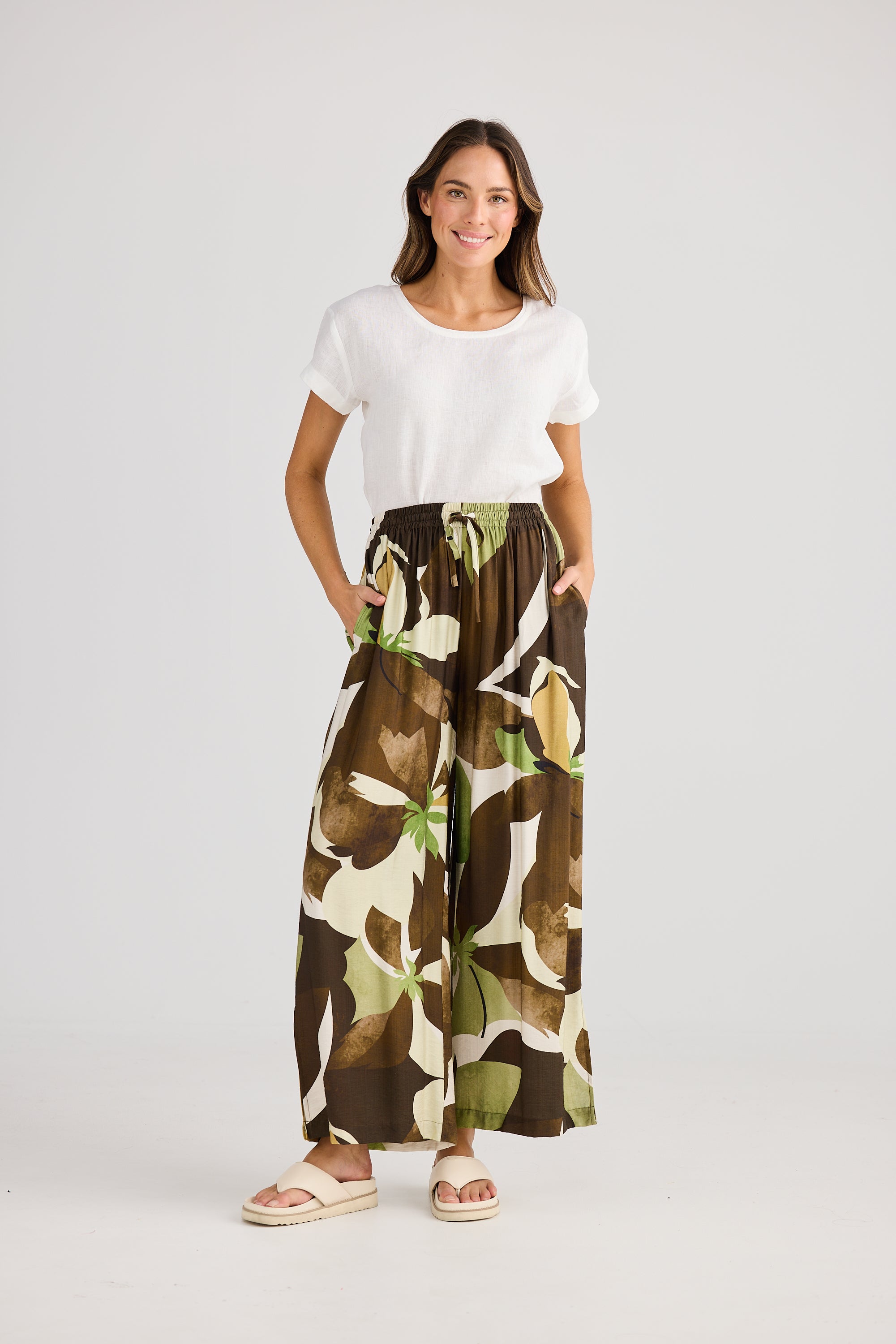 Slip into the playful comfort of the Fly Away Pants, designed with an elasticated waistband for a perfect fit and wide legs that sway with every step. Made from a soft printed viscose blend, these pants feature in-seam pockets for convenience and side splits that add a flirty flair to your outfit. Ideal for those who love to move freely and effortlessly.