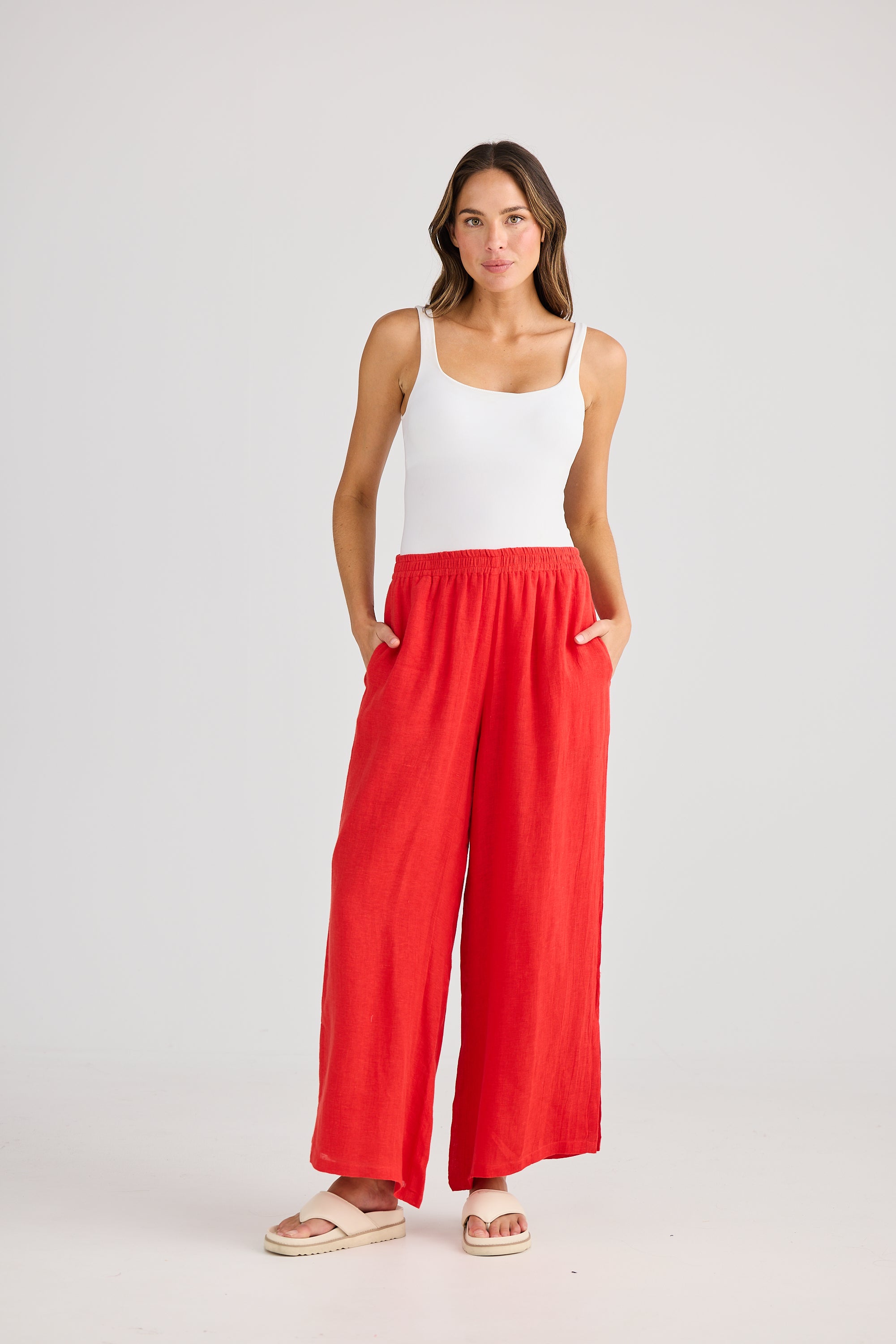 Float through your day in the Fly Away Pants, designed with a playful wide leg and comfy elasticated waistband. Crafted from breathable 100% linen gauze, these pants feature handy in-seam pockets and flirty side splits for effortless style and movement. Perfect for warm weather, they’re as light and carefree as your adventures.