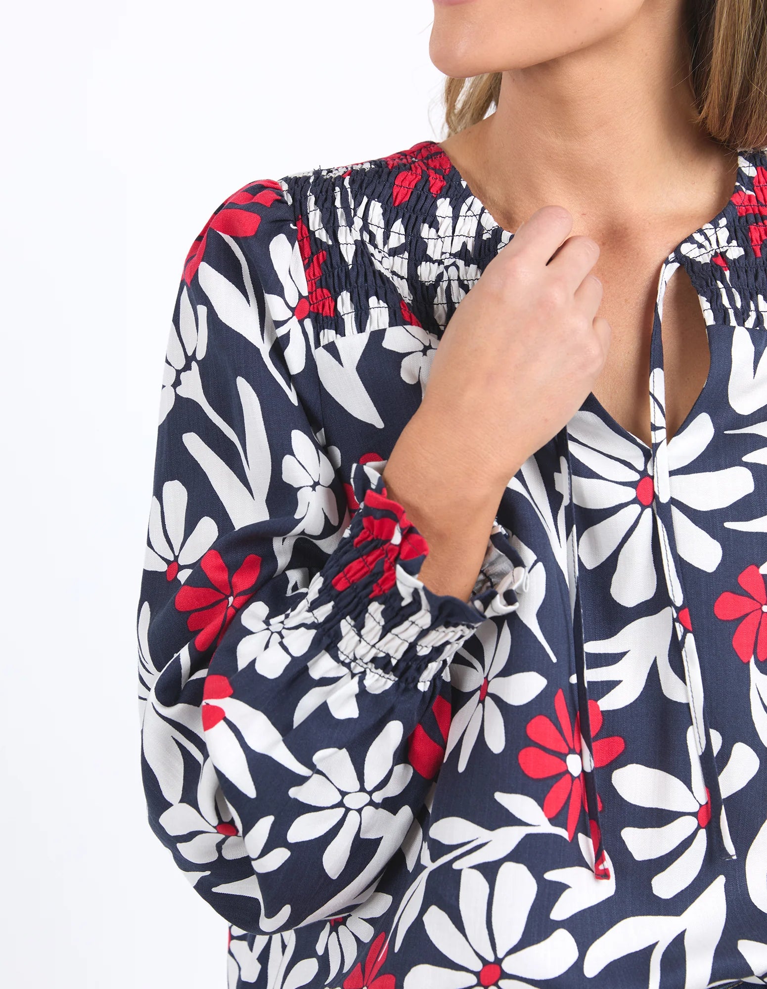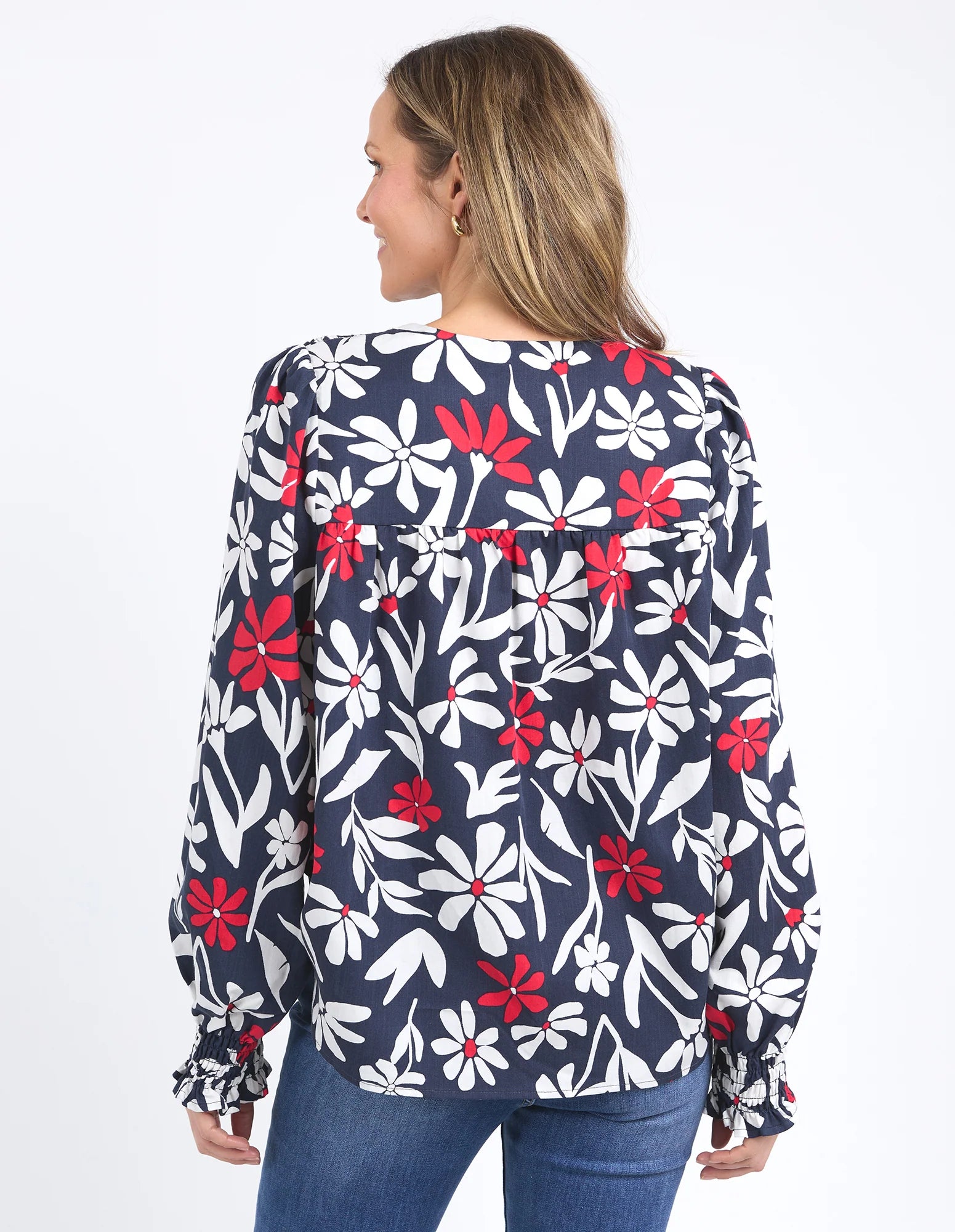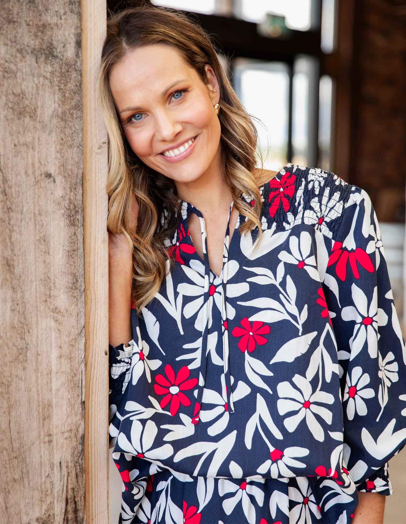 Bloom into style with our Indi Floral Blouse! Designed in-house with a timeless color palette of red, white, and navy, this button-through linen lyocell blouse is perfect for the season. Our exclusive print adds a touch of uniqueness to your wardrobe. (Floral and functional? Yes, please!)
