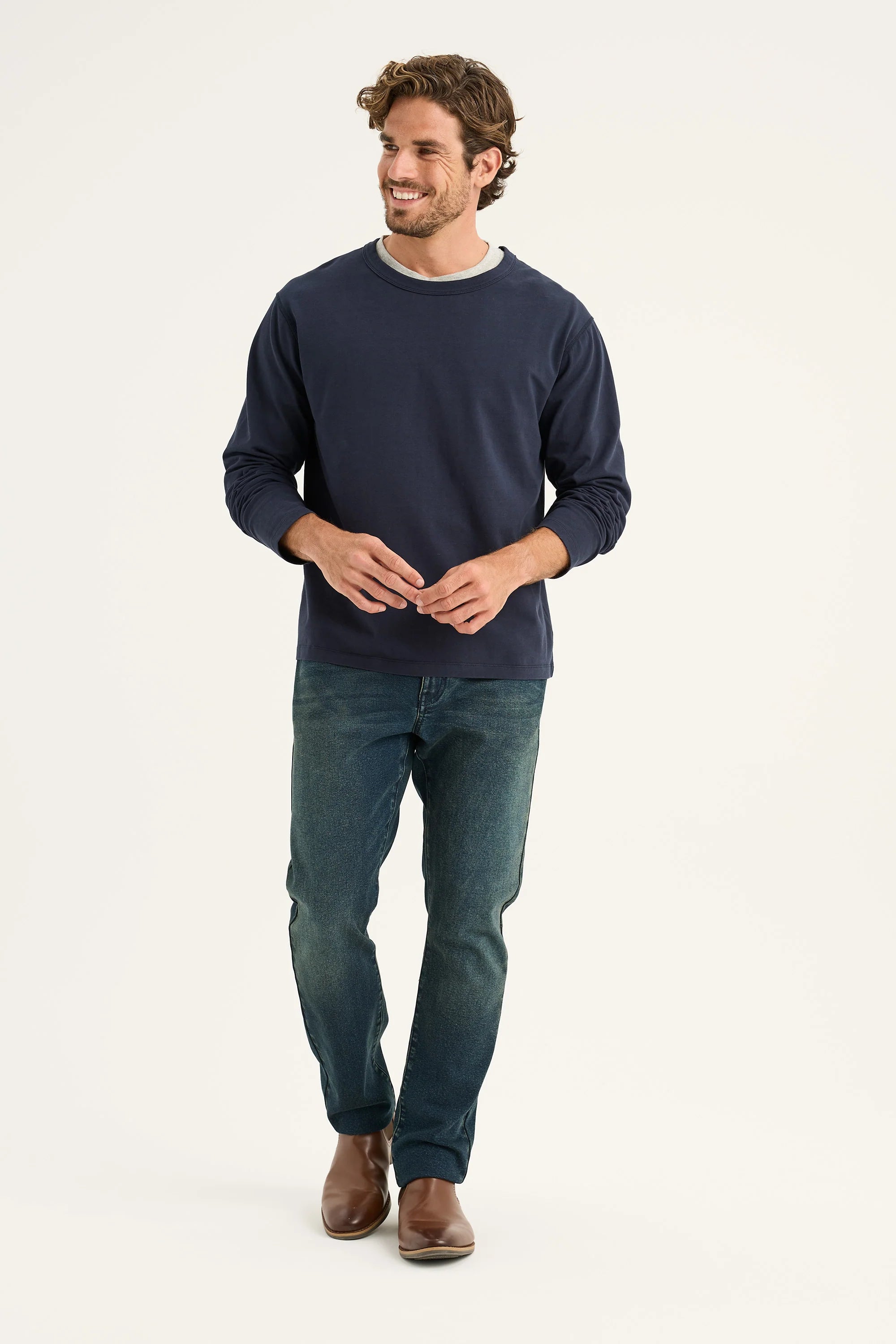 Experience comfort and style with the Carr Denim Jean. Featuring a relaxed fit and straight leg silhouette, this denim is crafted with a touch of elastane for ultimate comfort. With traditional front and back pockets and durable herringbone pocketing, these jeans are a must-have for any wardrobe!