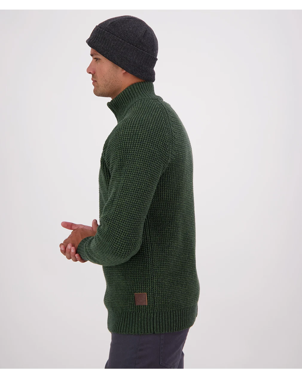 Stay warm and stylish this winter with the Chalky Island Jumper. The high neck, heavy lambswool blend and quarter zip provide ultimate comfort and insulation against the cold. The textured waffle knit and leather badge add a touch of sophistication. Don't let the cold weather stop you, take on the season with confidence!
