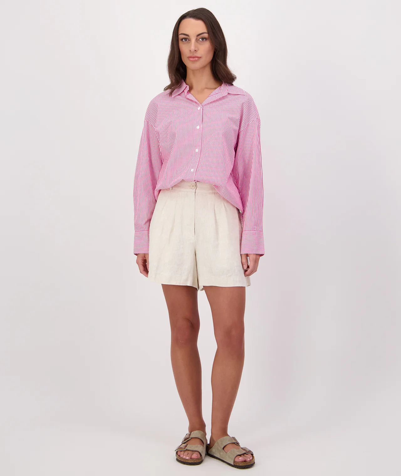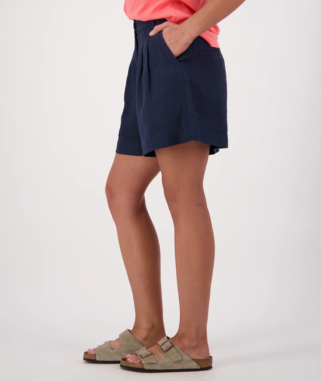 Introducing the Leila Linen Short – your new warm-weather essential with serious style credentials. Crafted from 100% linen at a substantial 200gsm weight, these shorts deliver comfort without the flimsy feel. The 5" inseam hits just right, while thoughtful details like front double pleats, angled side pockets, and back jett pockets keep things both functional and fabulous. A fixed waist with belt loops, zip fly, and button closure ensures a secure fit, and the signature Swanndri embroidery adds that unmistakable heritage touch. Perfect for everything from weekend adventures to casual office days – because who says linen can't be legendary?