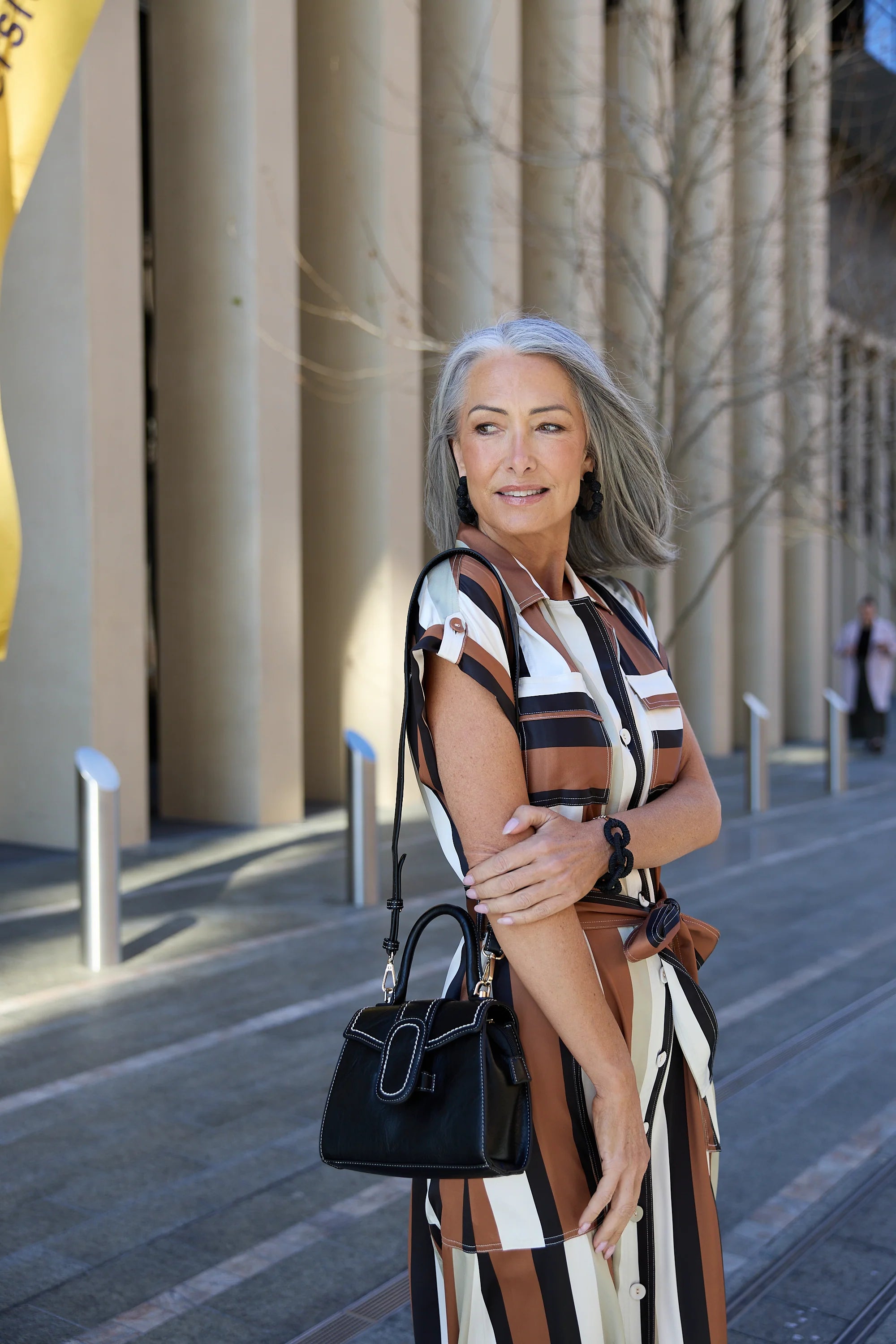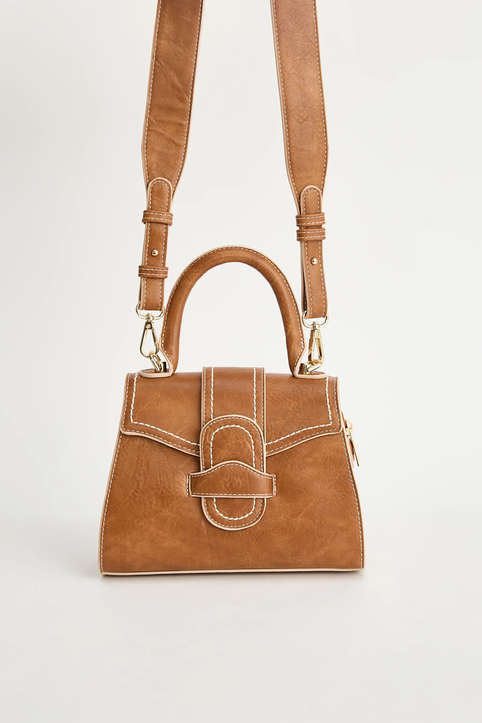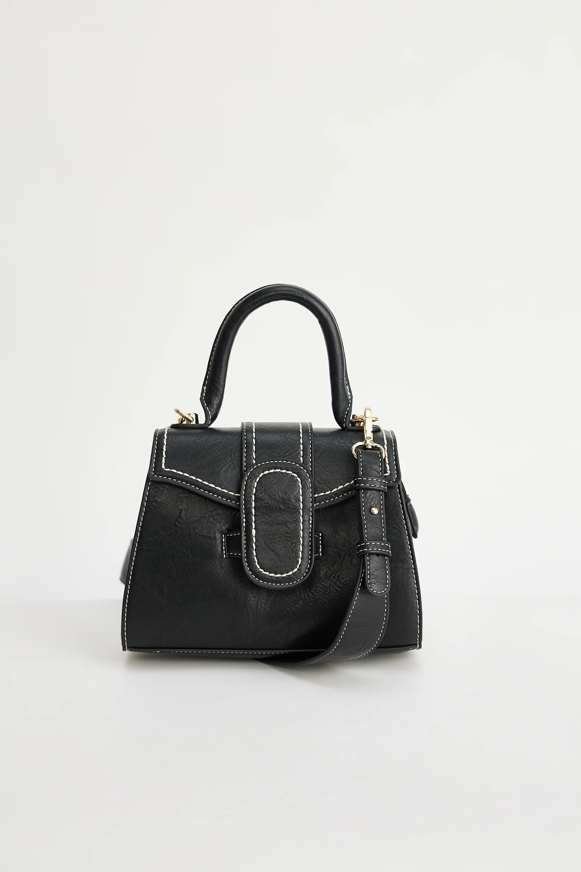 Elevate your style with the Roland Bag! Its structured mini top handle design and statement buckle detail add a chic touch, while the textured faux leather offers a luxurious feel. Perfectly sized for essentials, the included crossbody strap ensures you can carry it effortlessly, making it a must-have accessory for any occasion!