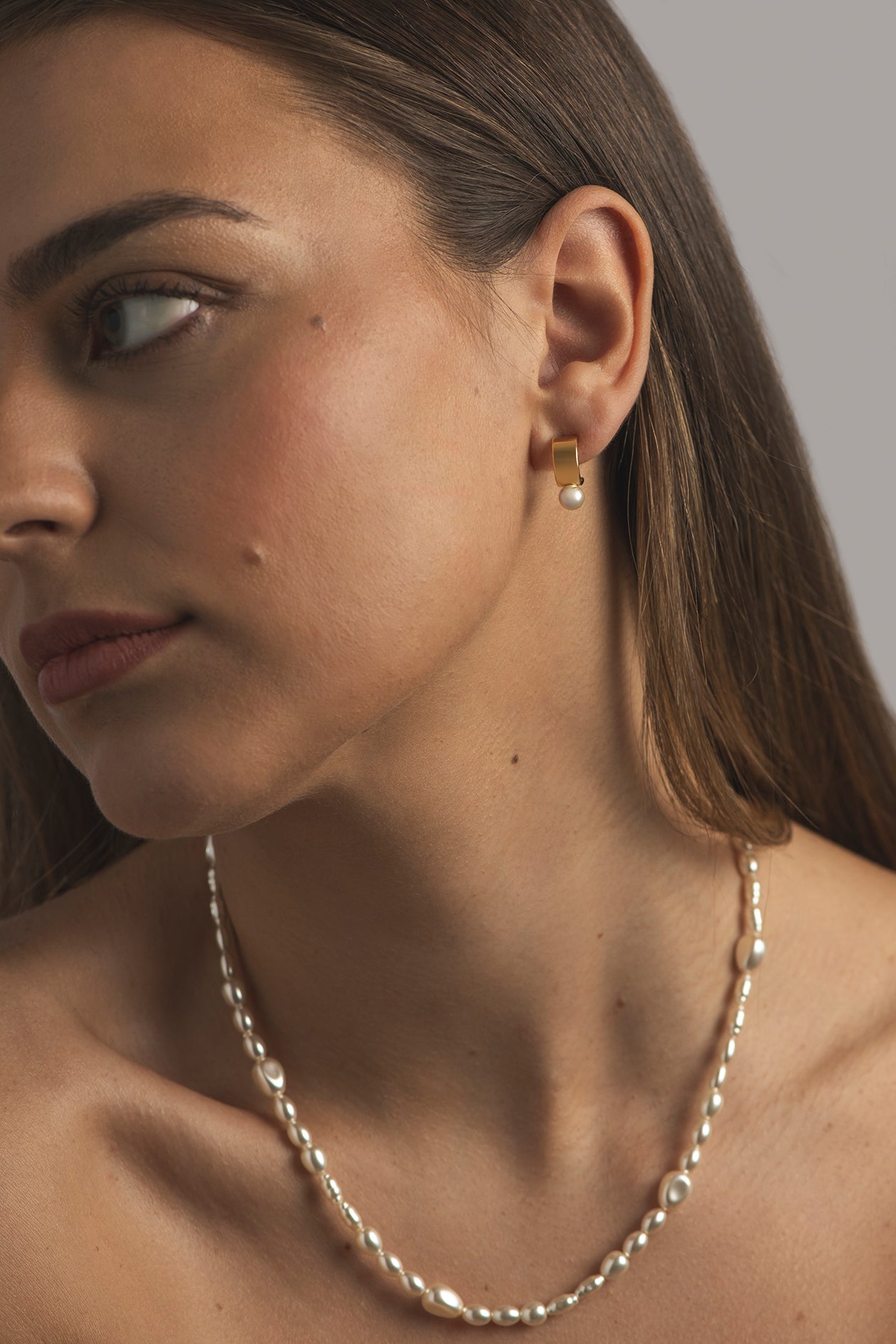 The Short Mixed Shape Pearl Necklace combines elegance with contemporary design, featuring a beautiful mix of pearl sizes and shapes that create soft texture and organic movement. Designed to sit perfectly at the collarbone, this women’s pearl necklace is a modern update to the classic pearl strand. A versatile piece that transitions effortlessly from day to night, it’s ideal for adding understated sophistication to any outfit.