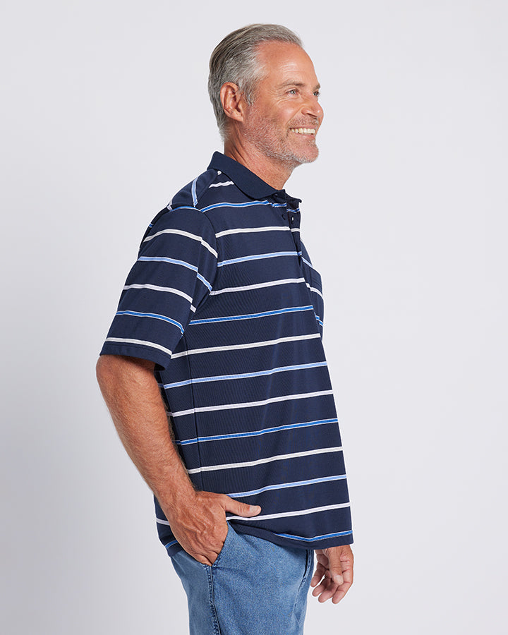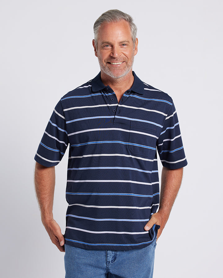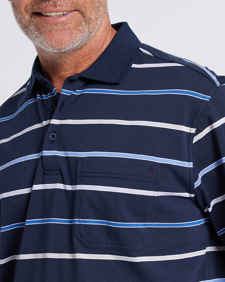 Get ready to make a statement with the Huck Kinnersly Polo! This timeless piece boasts a sleek ink base and modern stripe, making it your go-to for any occasion. With its effortless style, it's the perfect addition to your summer wardrobe. Don't wait, grab one now!