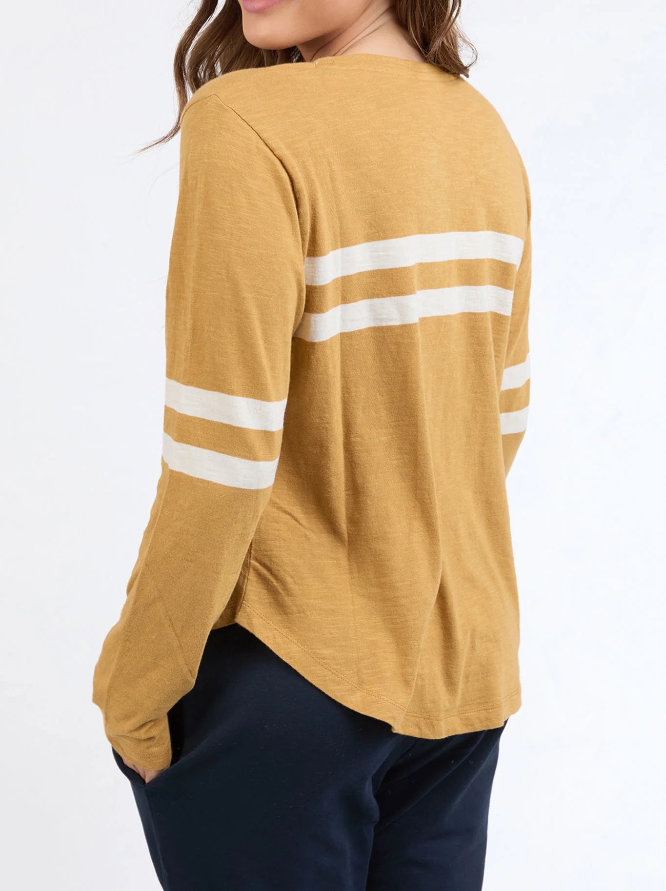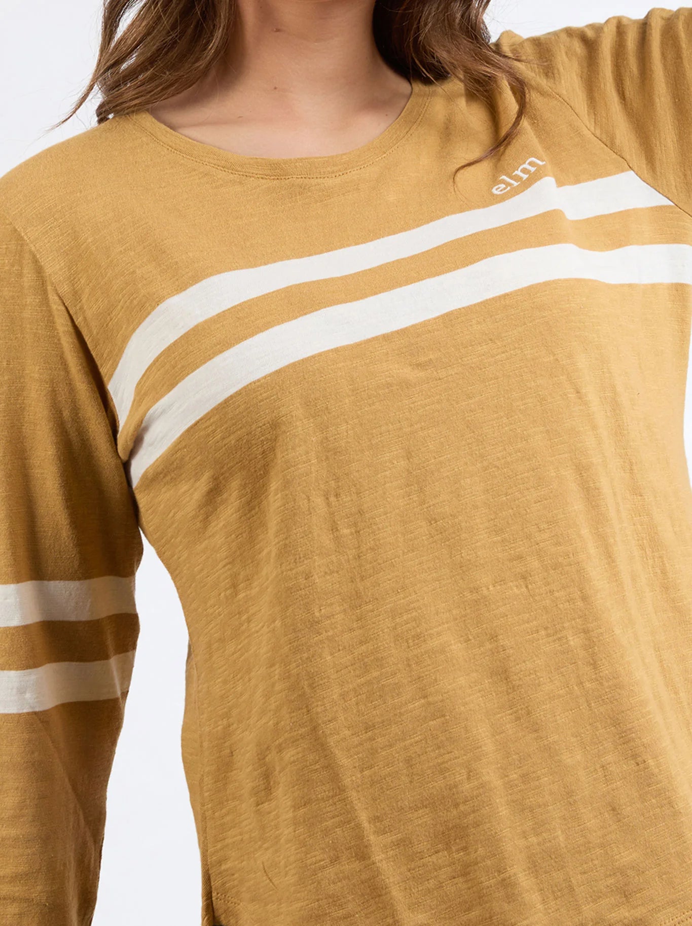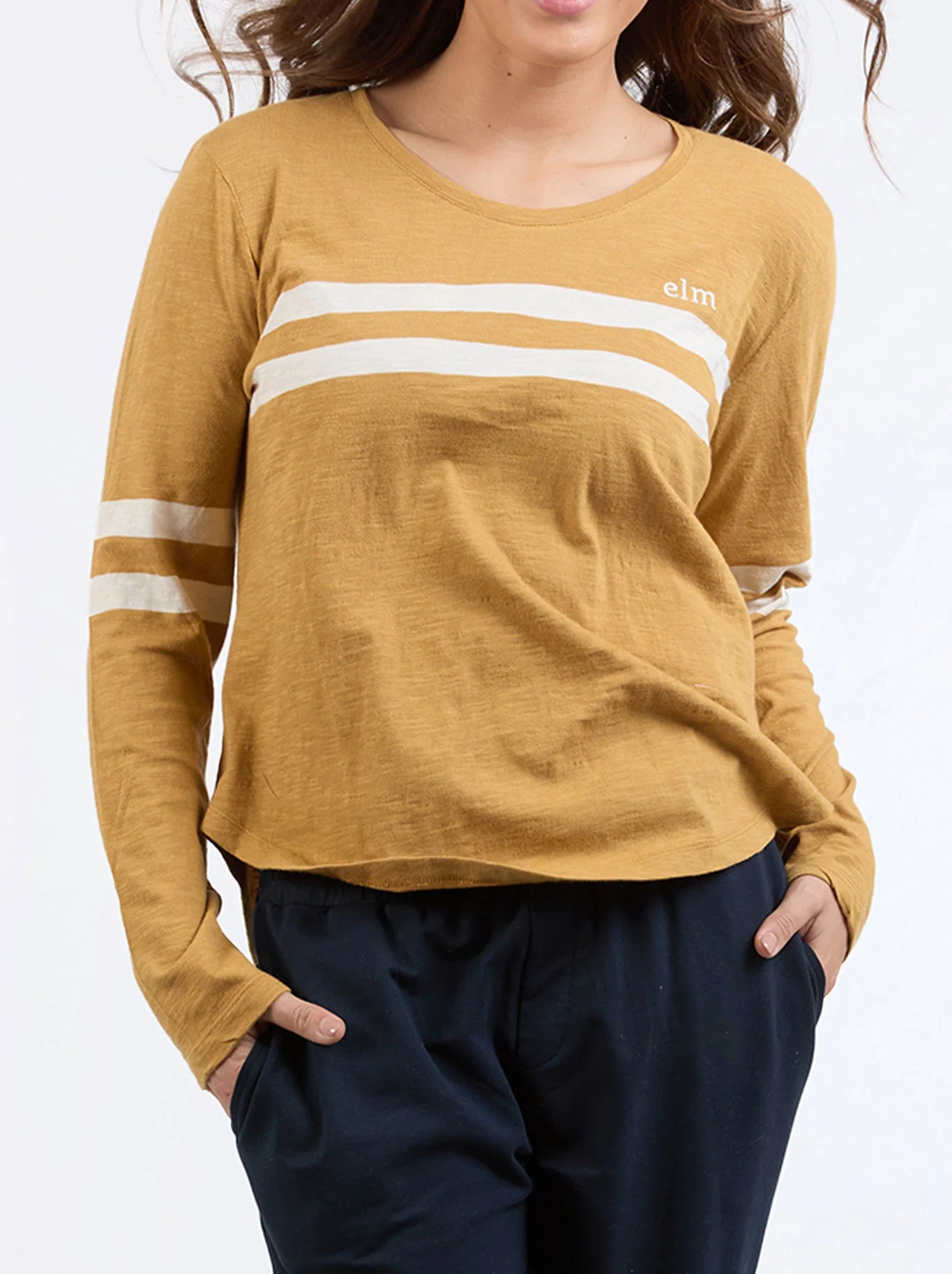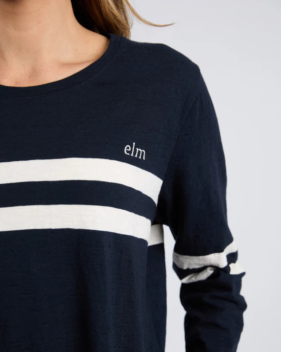 Get ready for both style and comfort with our Adora LS Tee! This classic and fun top features chest stripes and cute Elm embroidery. Layer it up or wear it by itself as a versatile and stylish wardrobe staple.