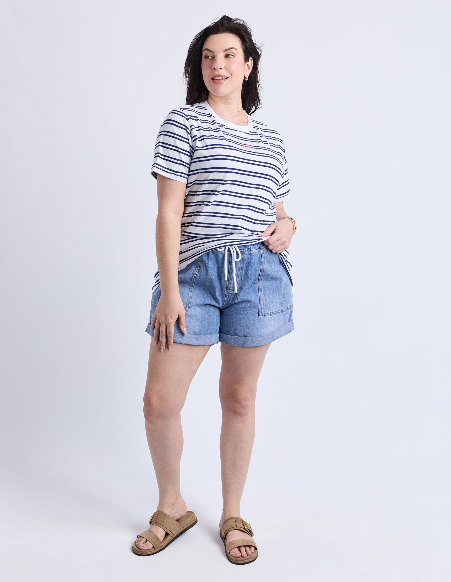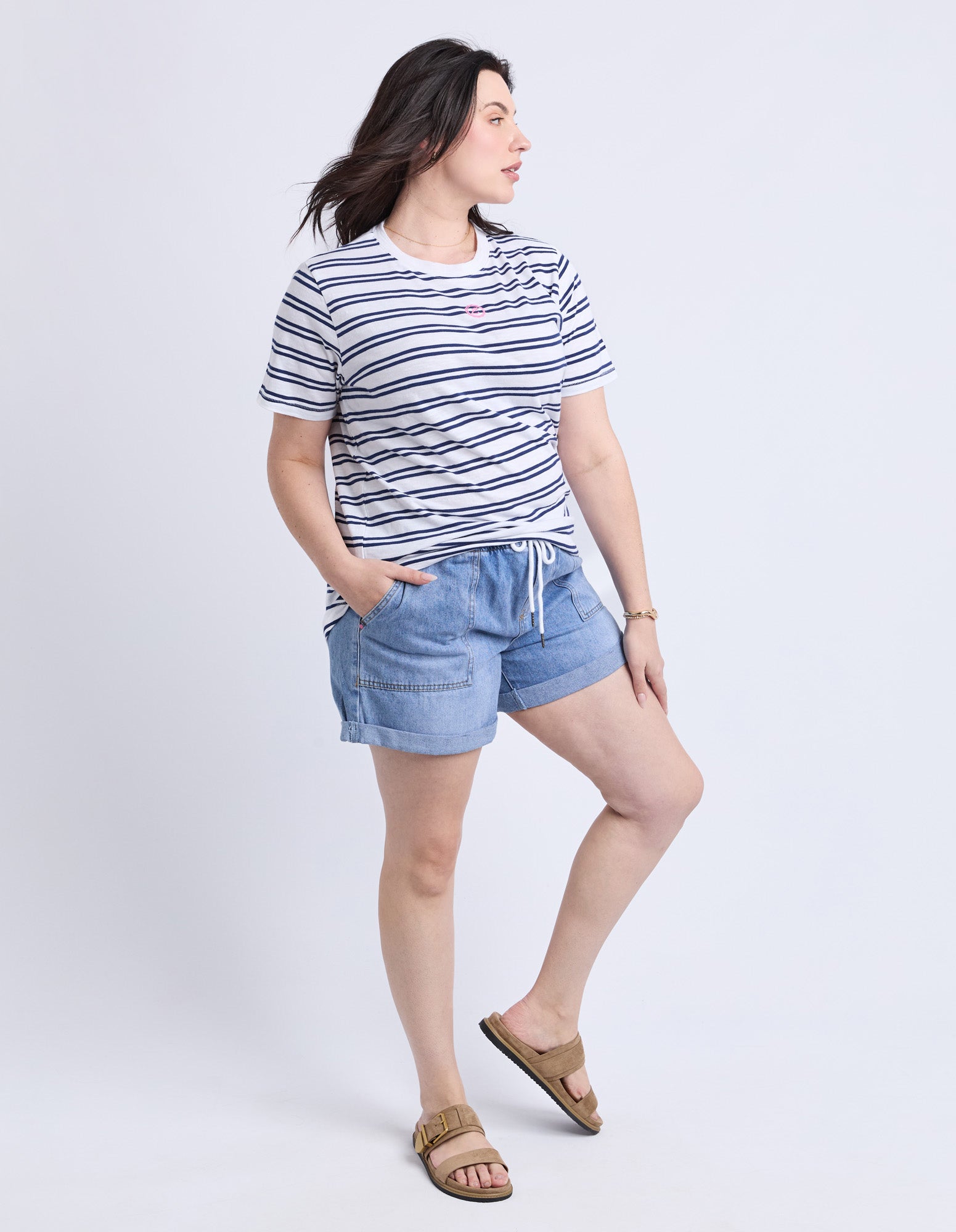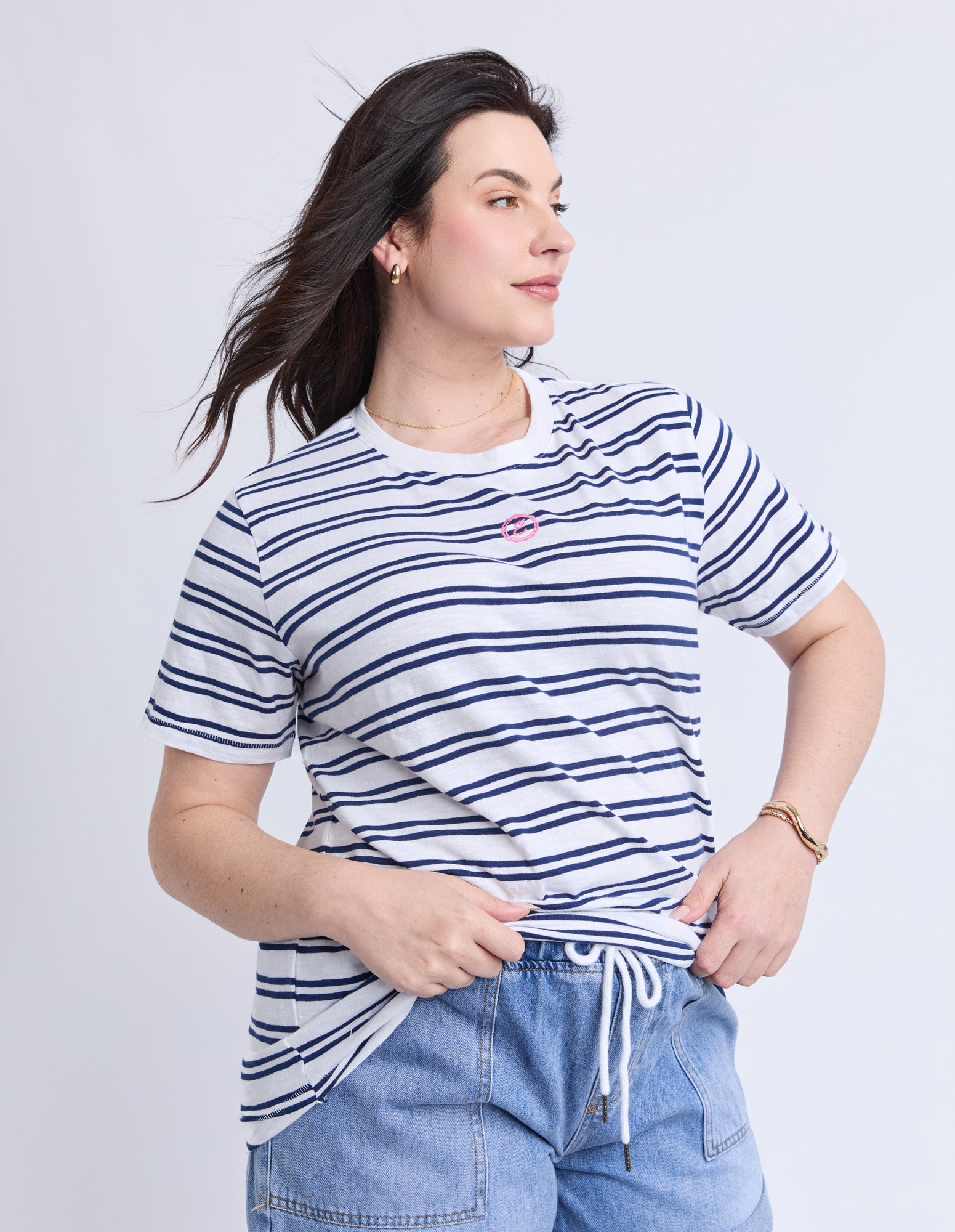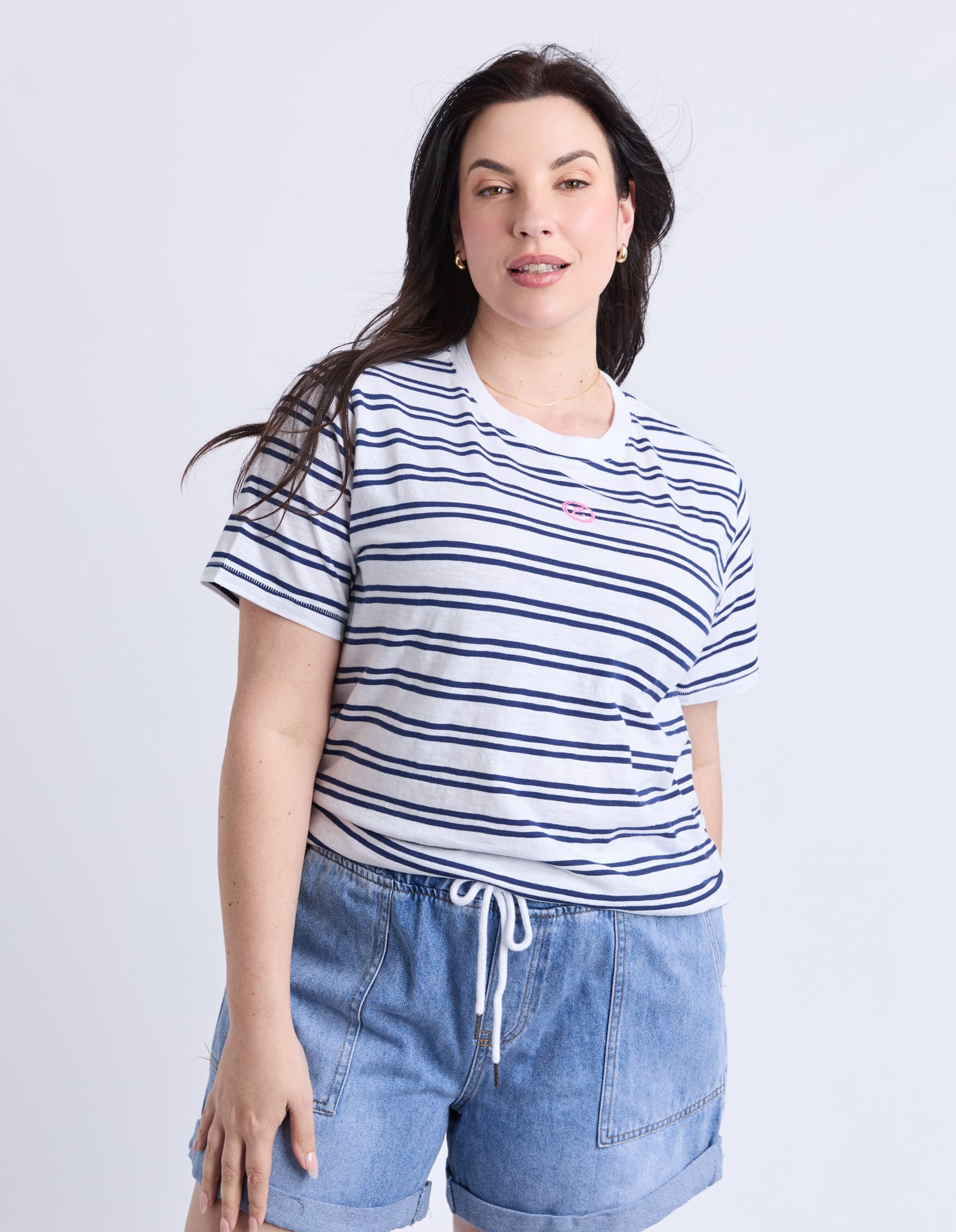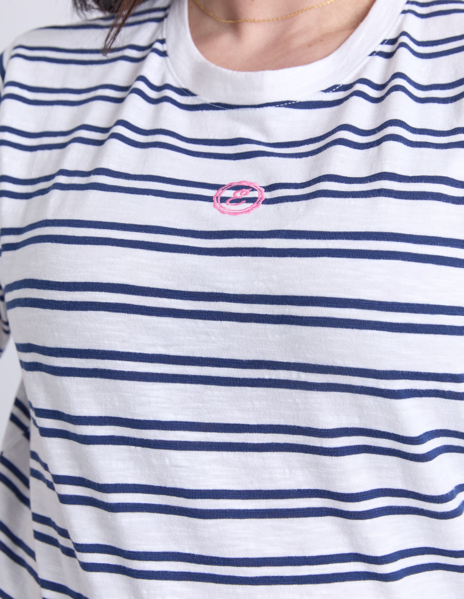 Stripey and cute. The Brio Tee features a centre front embroidery and is a regular fitting tee.