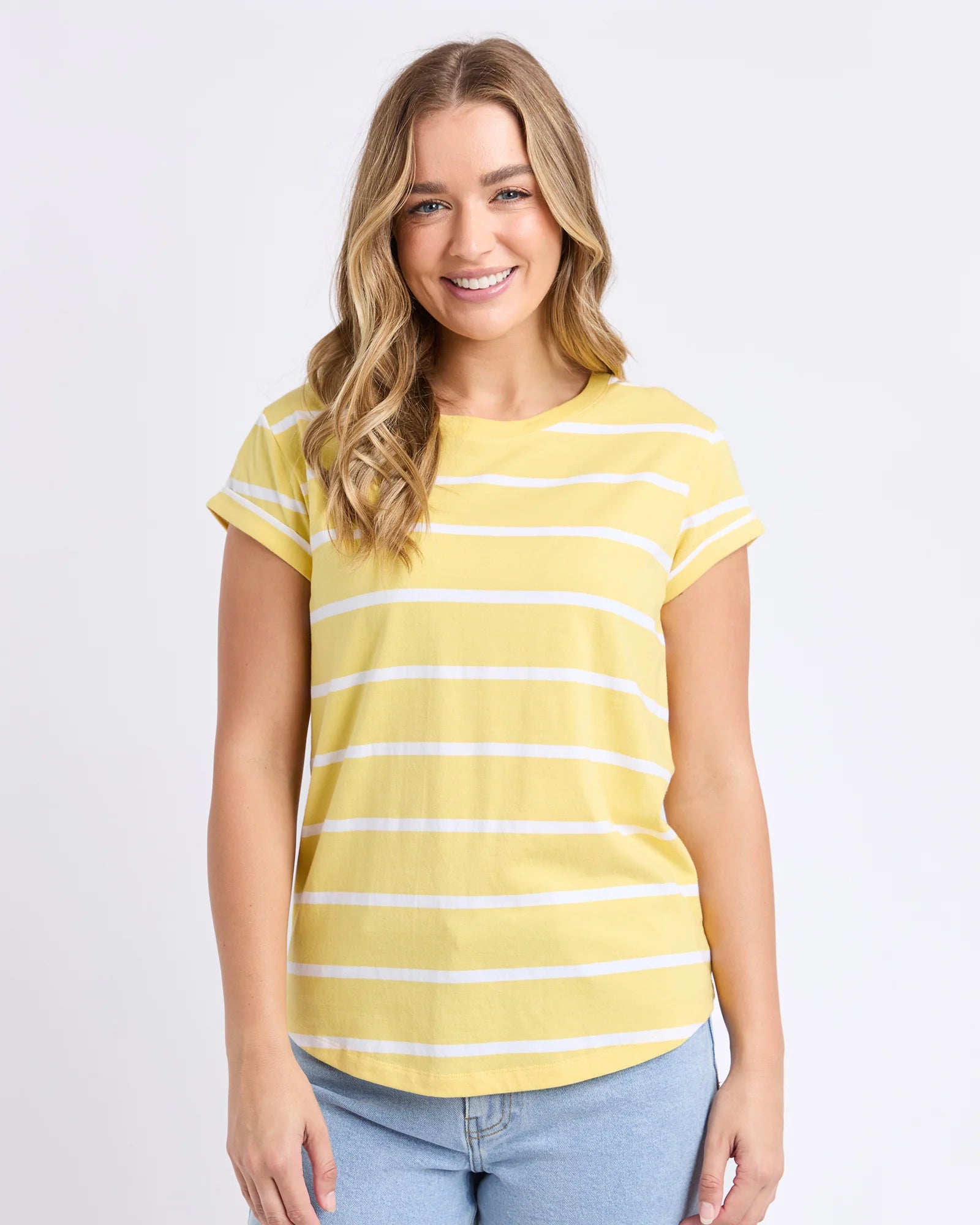 Indulge in the vibrant Manly Stripe Tee by Foxwood. The cheerful stripes bring a pop of color to your wardrobe, while the soft cotton promises comfort. Rolled cuff sleeves and a curved hem add a contemporary touch to this stylish and comfortable tee, perfect for any casual occasion.