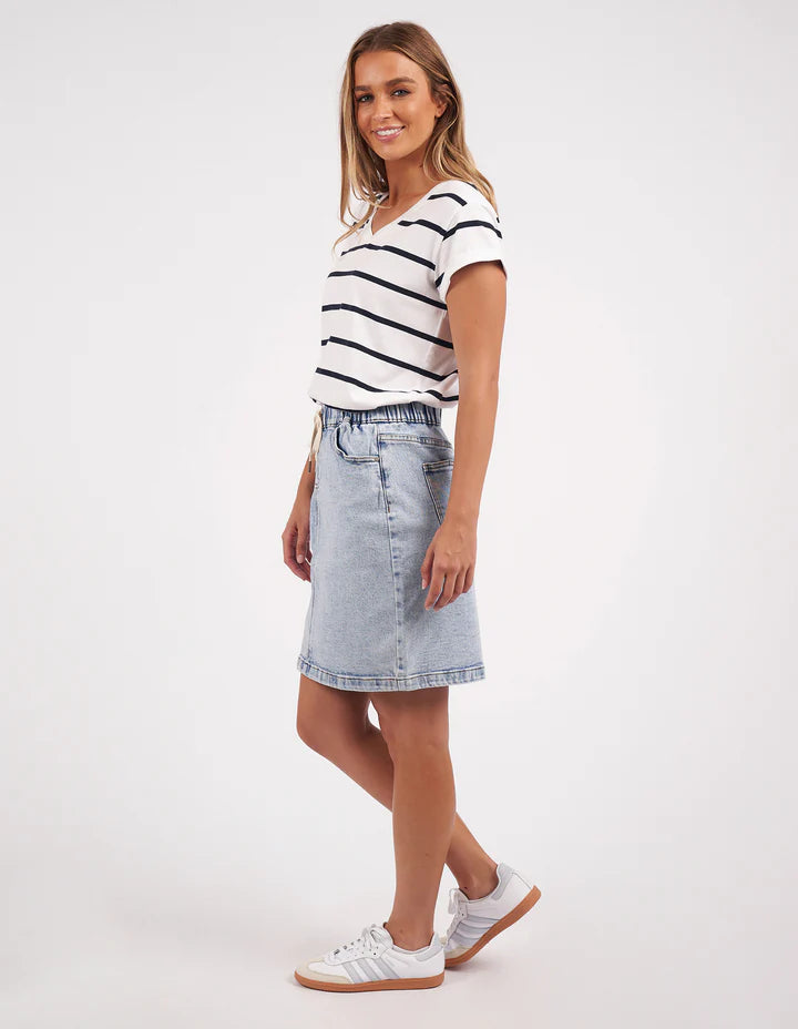 Meet the Manly Stripe Vee Tee—a timeless wardrobe essential you’ll reach for again and again. Made from 100% premium Pima cotton, this women’s striped vee neck tee is exceptionally soft, lightweight, and breathable. Designed with rolled cuff sleeves, a flattering curved hem, and classic yarn-dyed stripes, it delivers effortless style and all-day comfort.