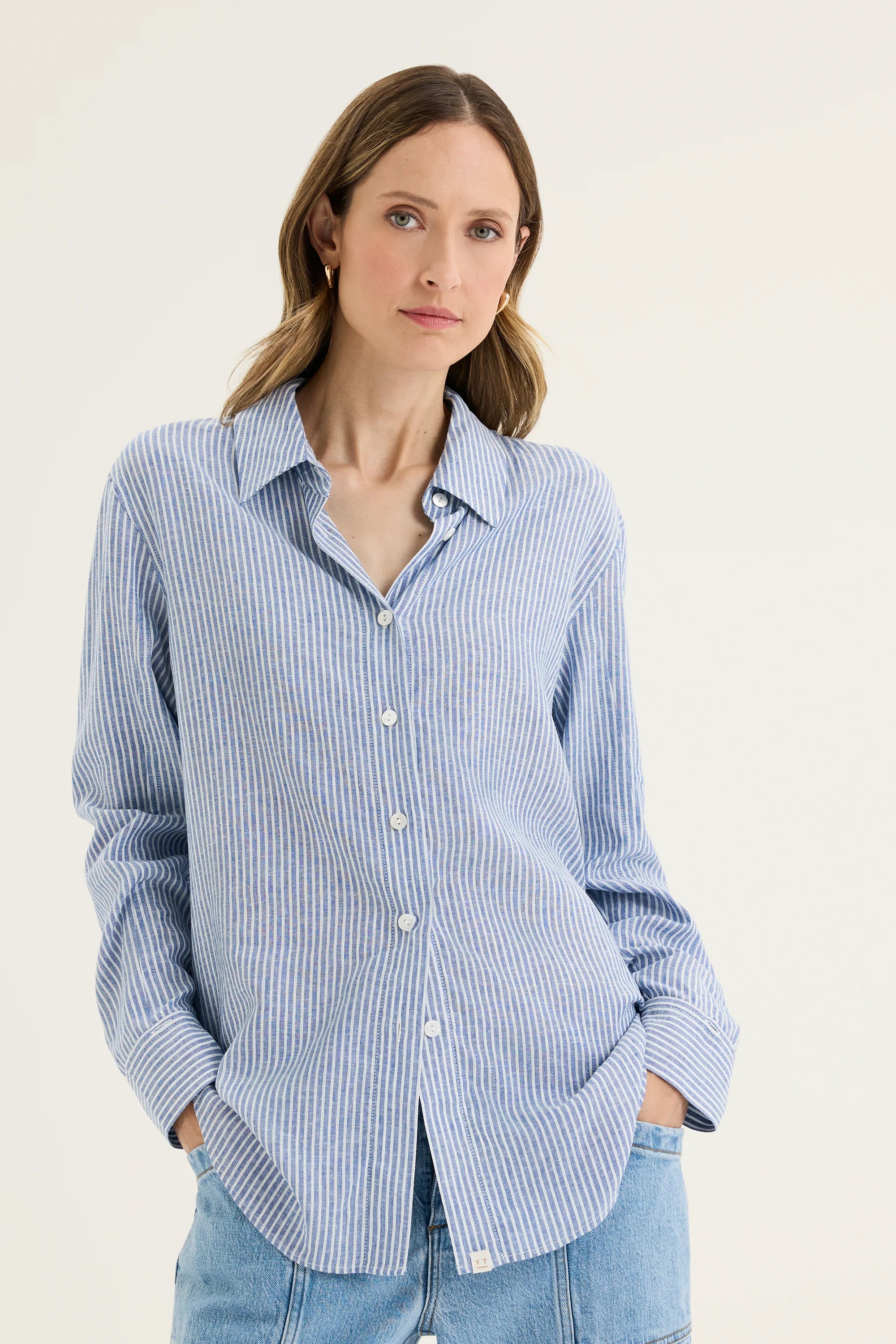 The Mornington Shirt offers a refined update on the classic striped button-up, crafted from a premium linen-viscose blend for soft, breathable comfort. Yarn-dyed vertical stripes create a flattering, elongating silhouette, while the curved hem and back yoke with an inverted pleat ensure ease of movement. Featuring a traditional collar, button-through front, and tailored cuffs, this shirt blends relaxed sophistication with timeless tailoring — perfect for casual days or elevated occasions.
