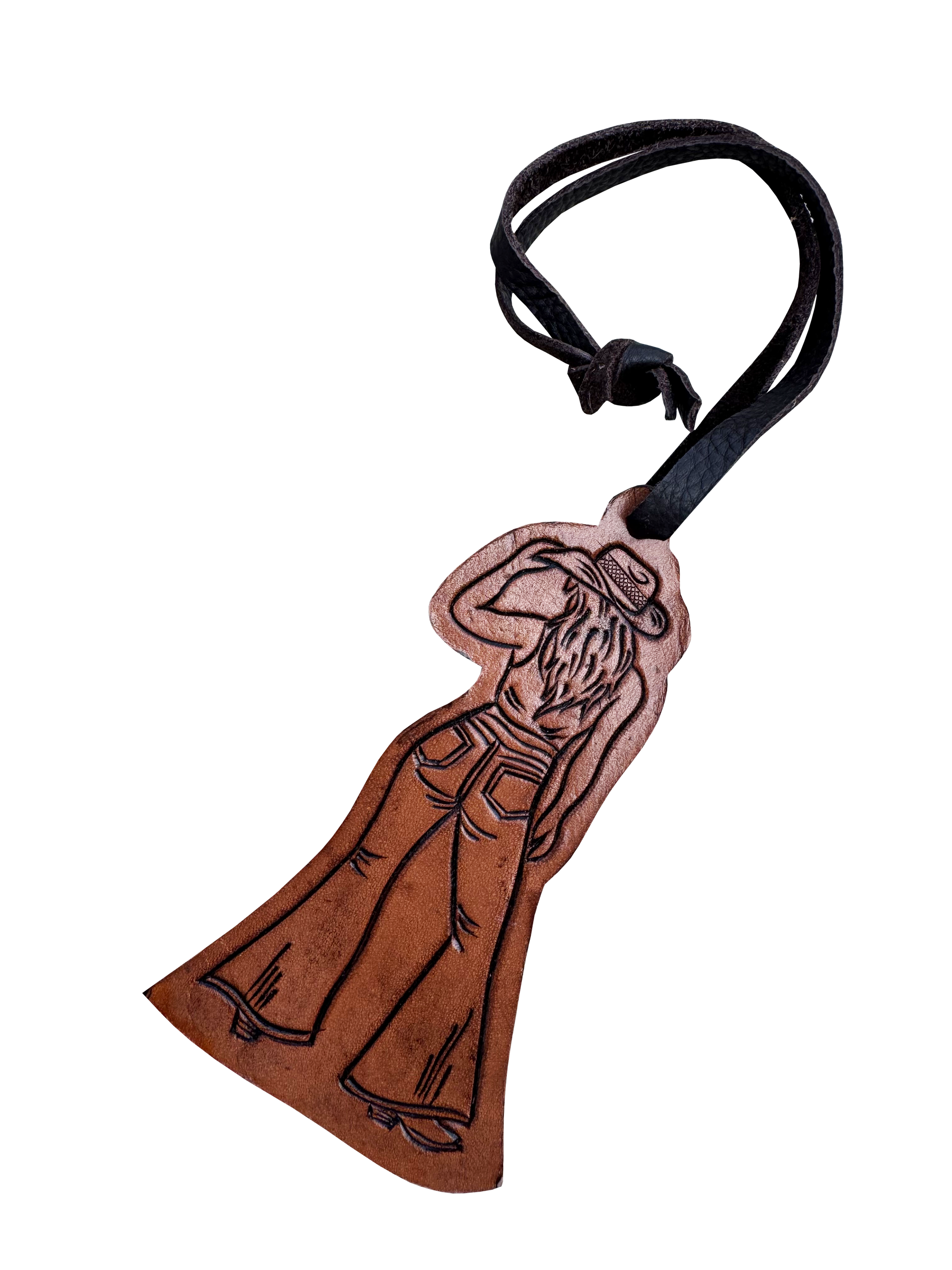 Add a playful twist to your favorite cowhide bag with this unique Cowgirl Tooled Leather Bag Charm. Handmade with genuine leather, each charm is carefully cut and intricately tooled by hand, making every piece one of a kind. The perfect size to dangle from your bag, it brings a little western charm and personality to your daily style.
