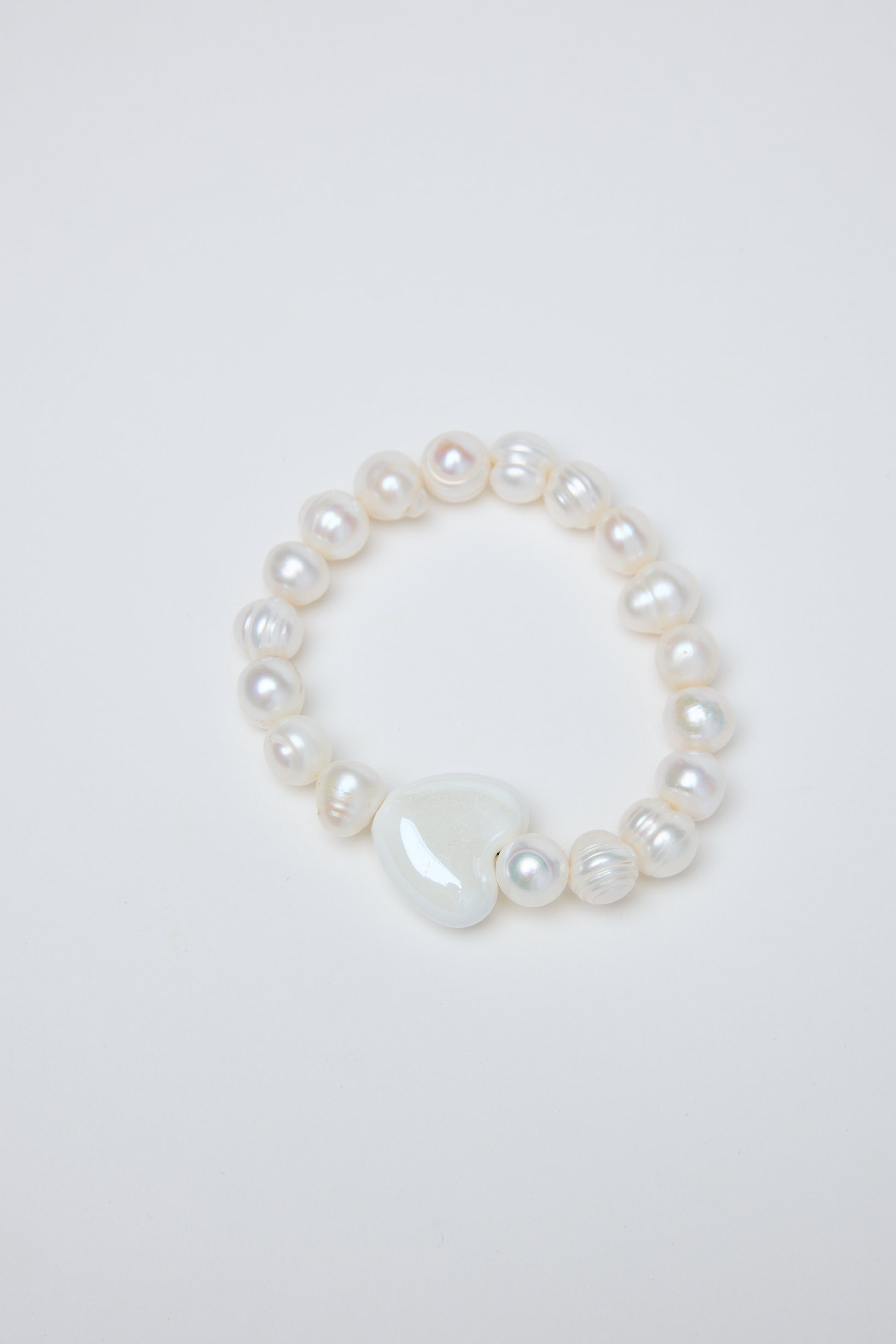 The Pearly Heart Bracelet is a fun and flexible stretch bracelet accented with a charming heart bead and fresh water pearls. Perfect for stacking with your other favorite bracelets, it adds a playful sparkle that lifts your everyday style with effortless flair.