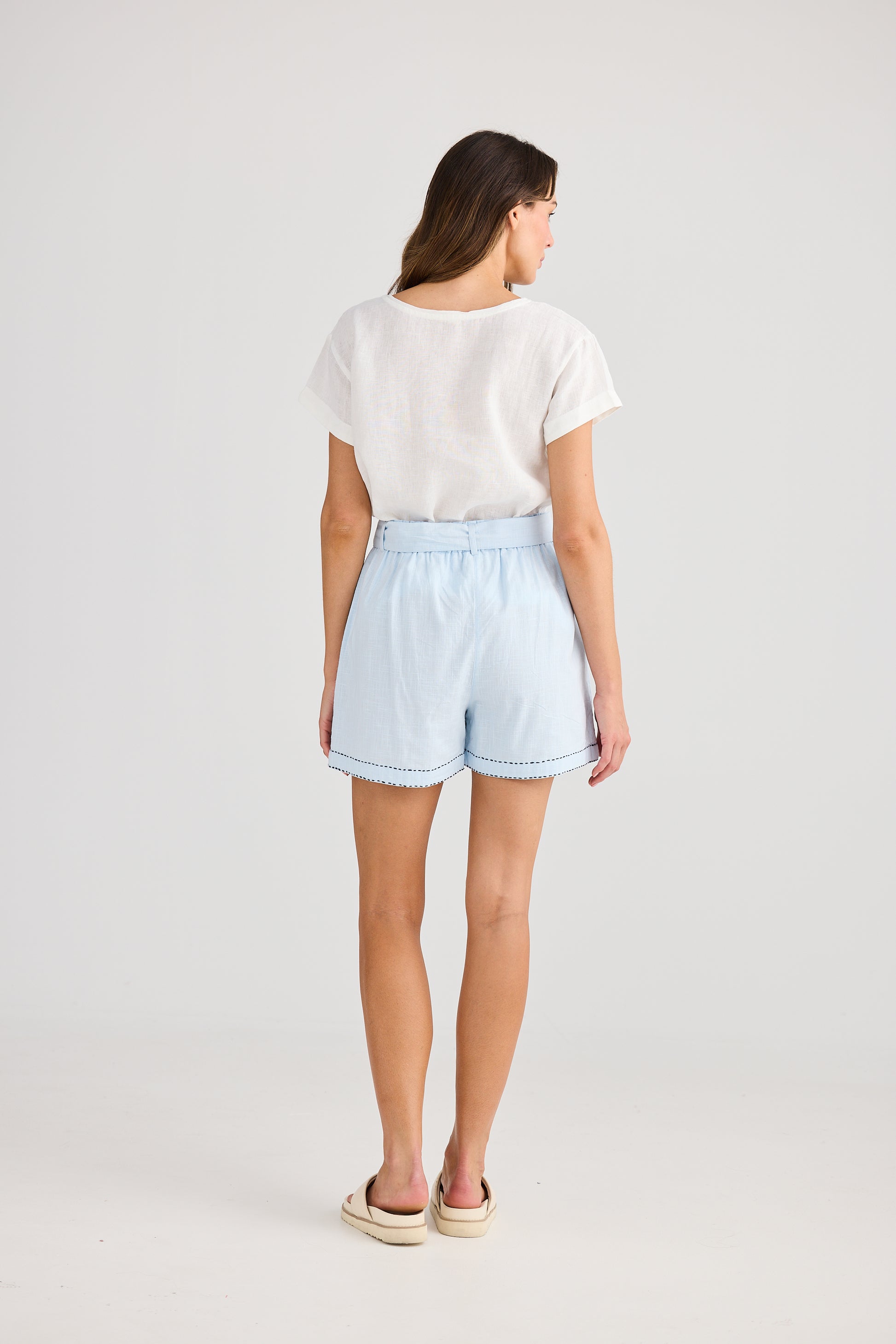 Enjoy sunny days in these playful Seaside Shorts, designed with an elasticated waistband and waist tie for a comfy, adjustable fit. The fly front closure and cutaway pockets add convenience, while the mid-thigh length keeps your look fresh and breezy. With eye-catching contrast embroidery, these shorts are perfect for adding a splash of fun to your summer wardrobe.
