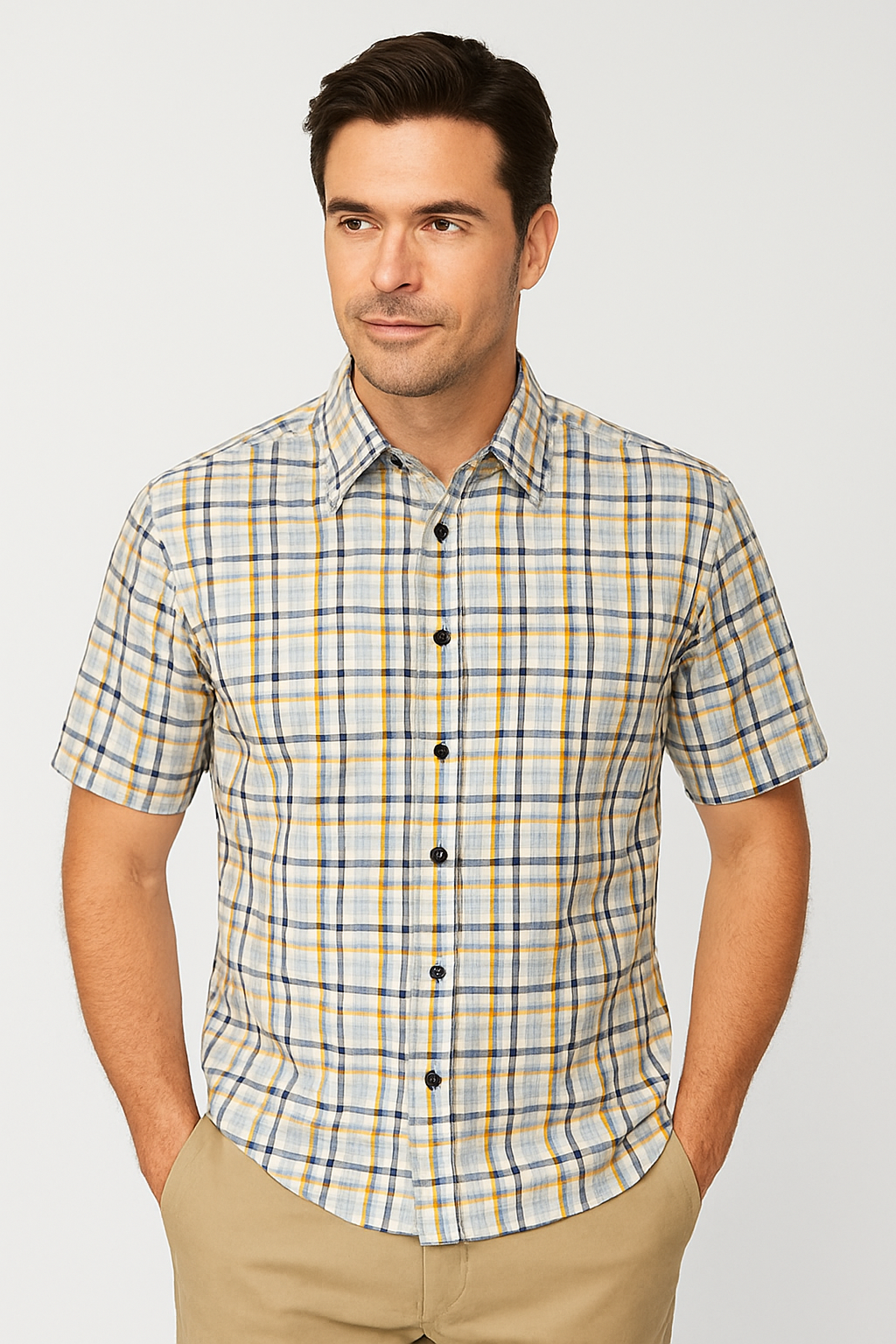 Stay cool and comfortable in the Aertex Short Sleeve Shirt, crafted from 100% cotton with a unique cellular weave that allows air to circulate. Designed for all-day wear, this breathable plaid shirt adjusts to changing conditions—keeping you cool in the heat and warm when it’s cooler. Featuring a classic fit, full button placket, short sleeves, and a front pocket, it’s the perfect blend of style and function for everyday wear. Ideal for casual outings, work, or weekend comfort.